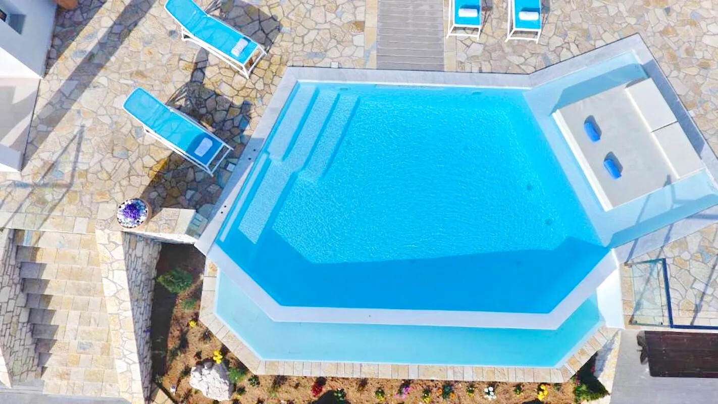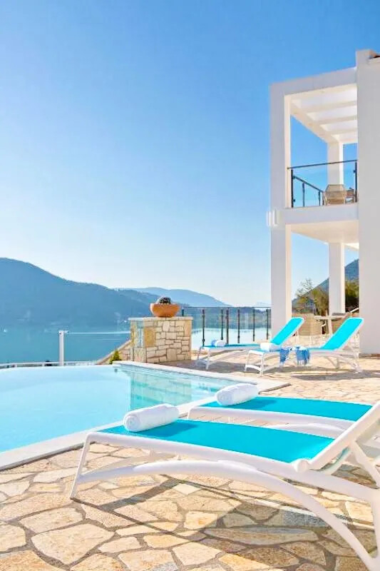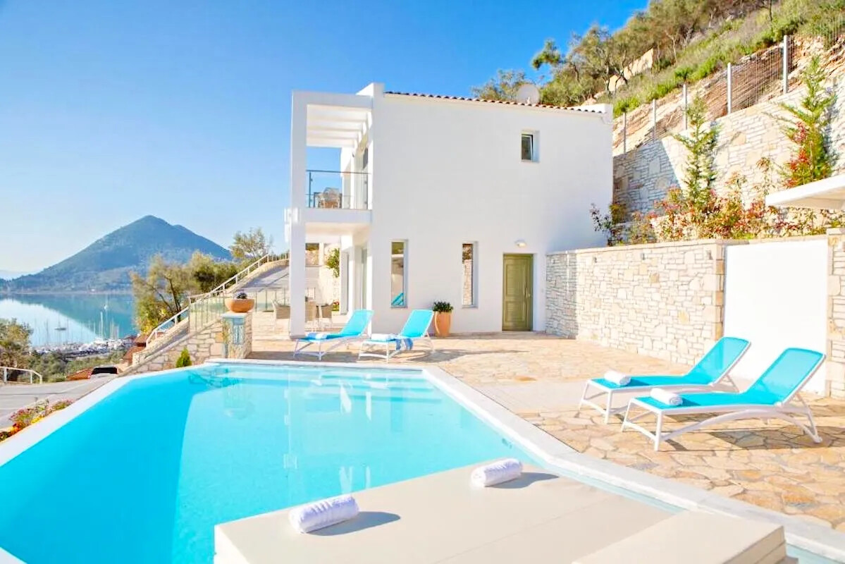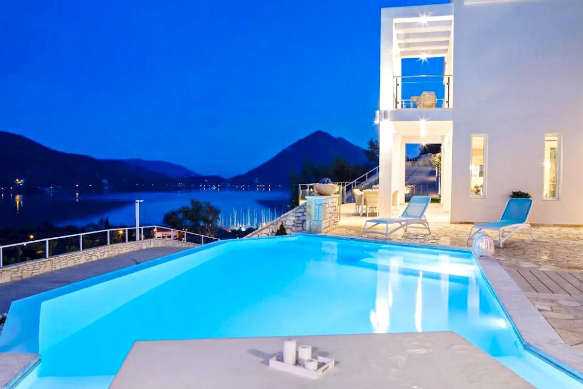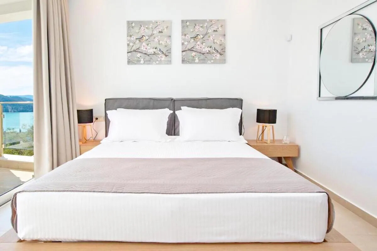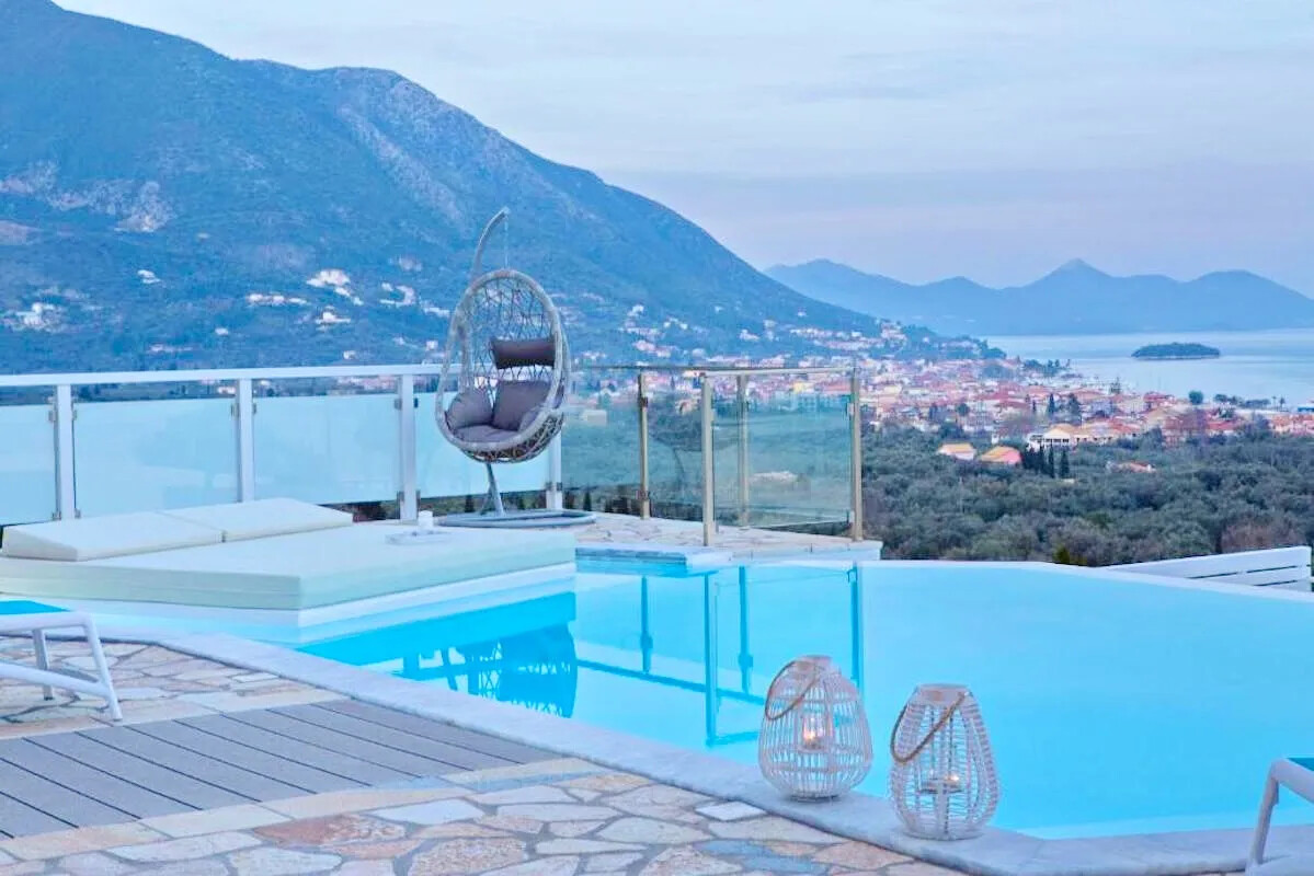 • Views: Panoramic views of Vlycho Bay, Nydri, and Skorpios.
