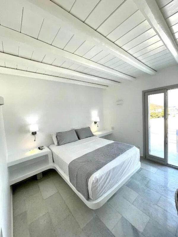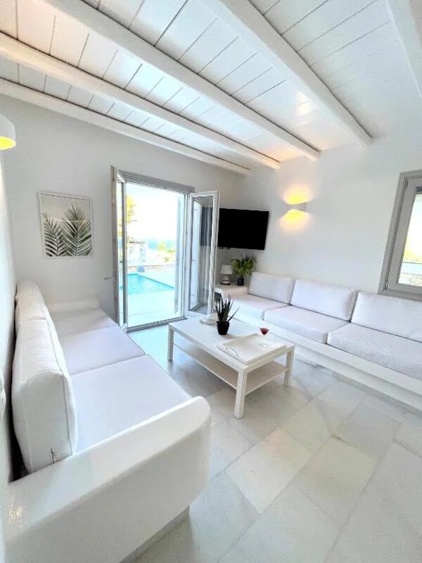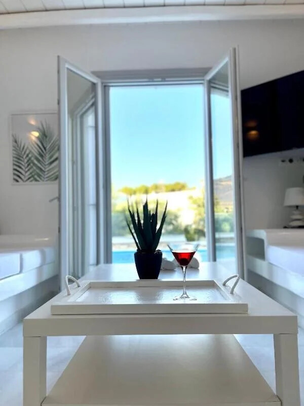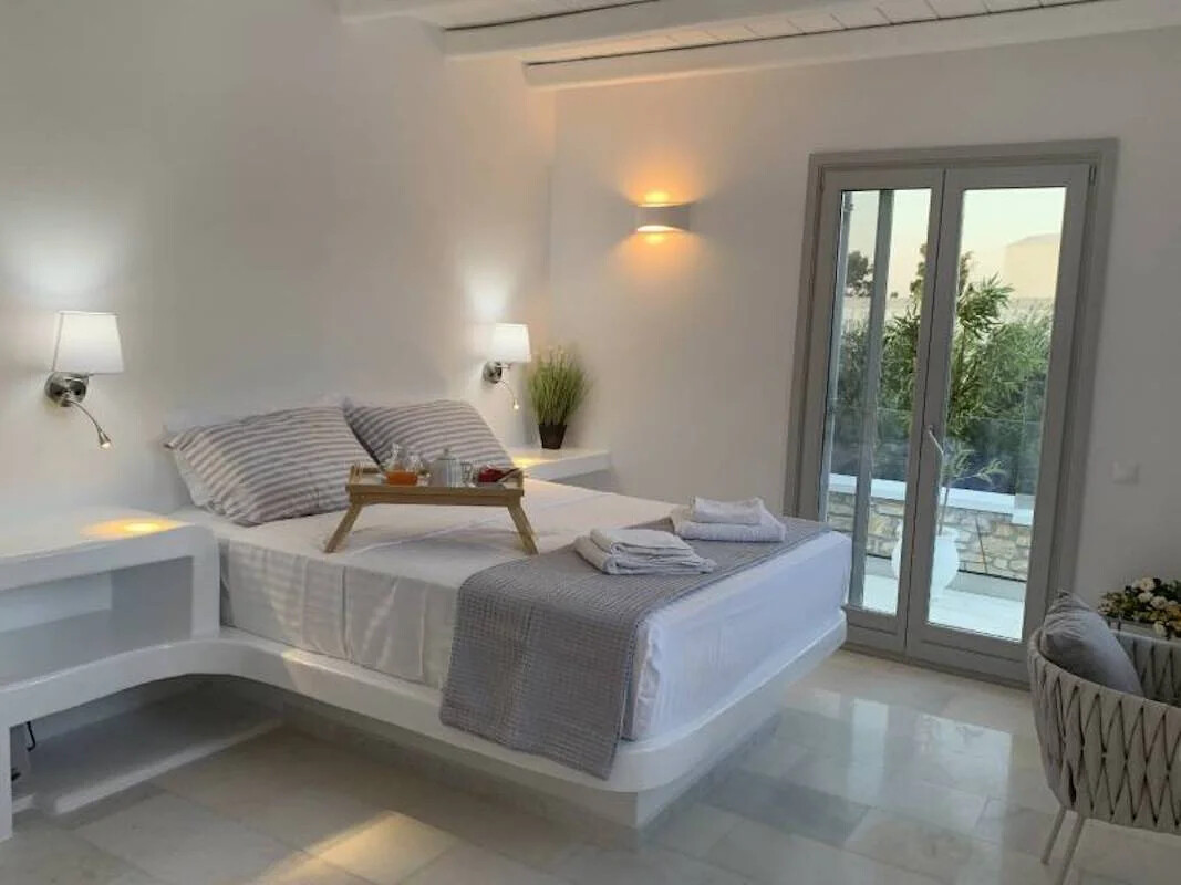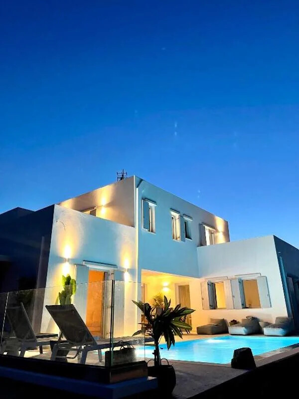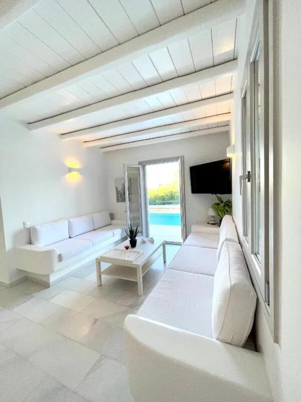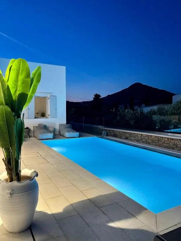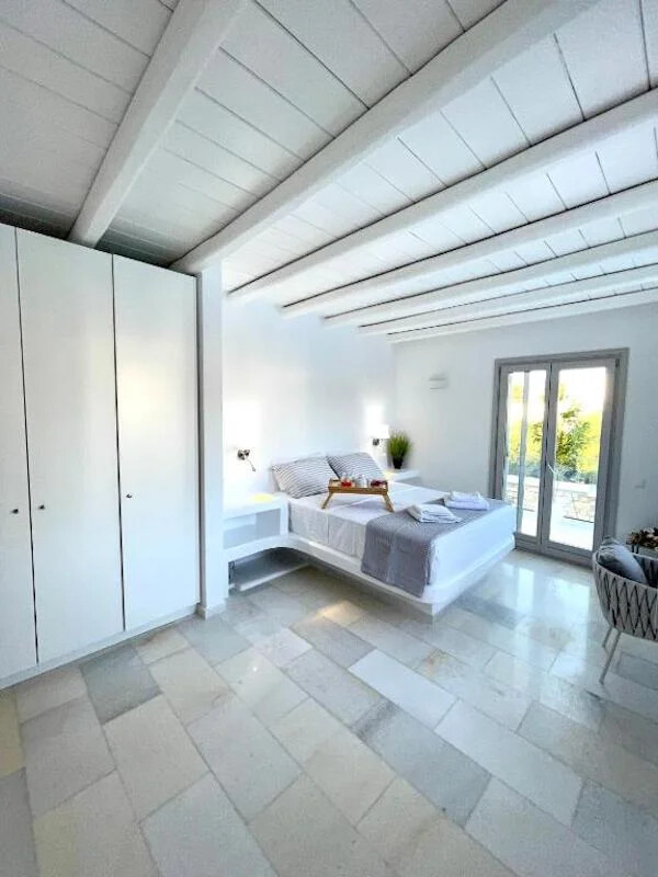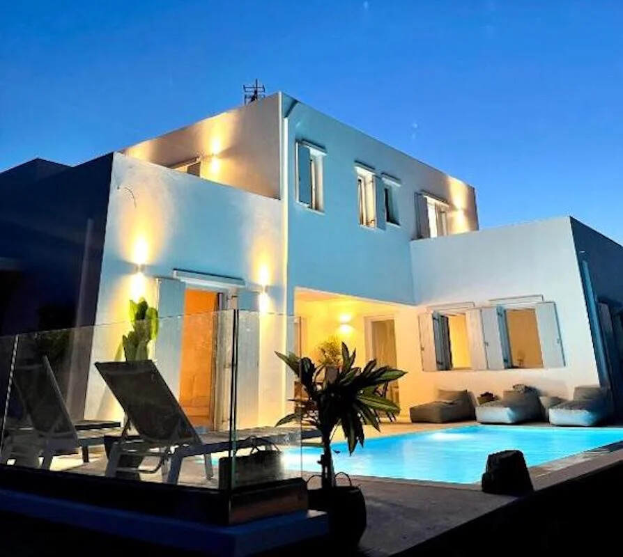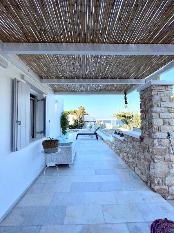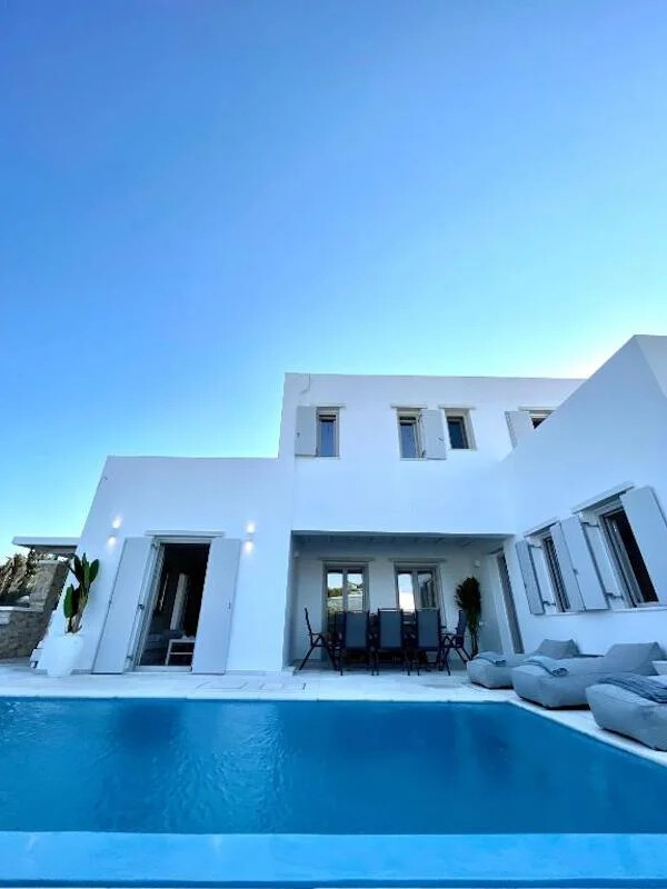 400 meters away. from the beach of Logaras and 1.1 km. from Pounta beach. The nearest airport is the State Airport of Paros, at a distance of 19 km. from the villa.