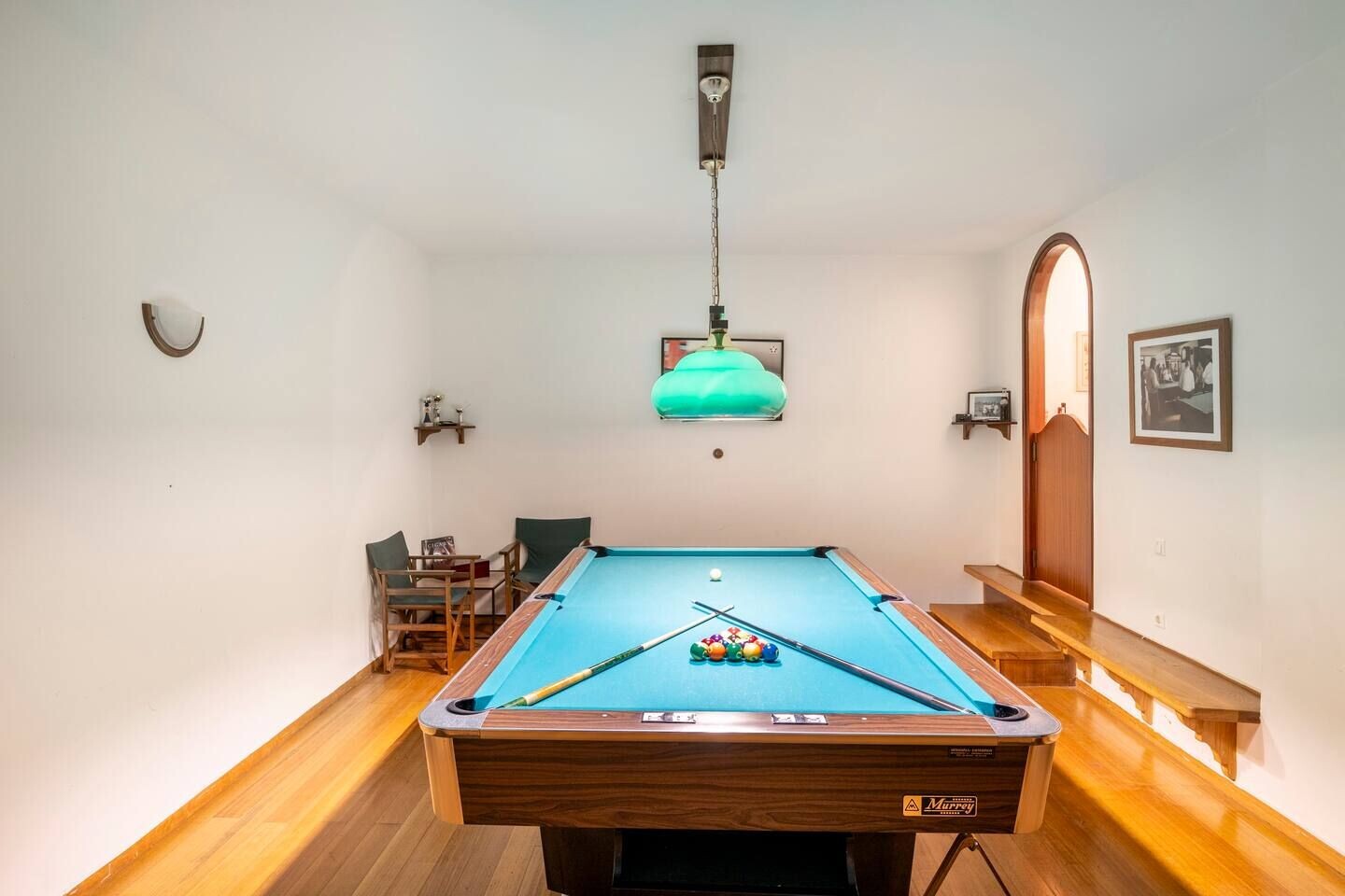 The villa features 6 renovated bedrooms, 2 spacious living rooms with energy fireplaces, 2 kitchens, a dining room, 5 bathrooms, and 1 WC, as well as an additional TV room with a desk. A fully equipped independent apartment on the semi-basement level, a billiard room, and a sauna are also included. The third level comprises a completely independent apartment with its own private entrance, ensuring absolute privacy for the tenants.