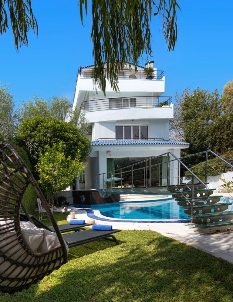 Located in the prestigious area of Glyfada, this luxurious 650sqm villa is available for long-term rental from December 1st, 2025. The property boasts a private pool and a beautifully landscaped garden, just 150m from the beach. This stunning three-story villa is fully furnished, offering the ultimate in comfort and luxury.