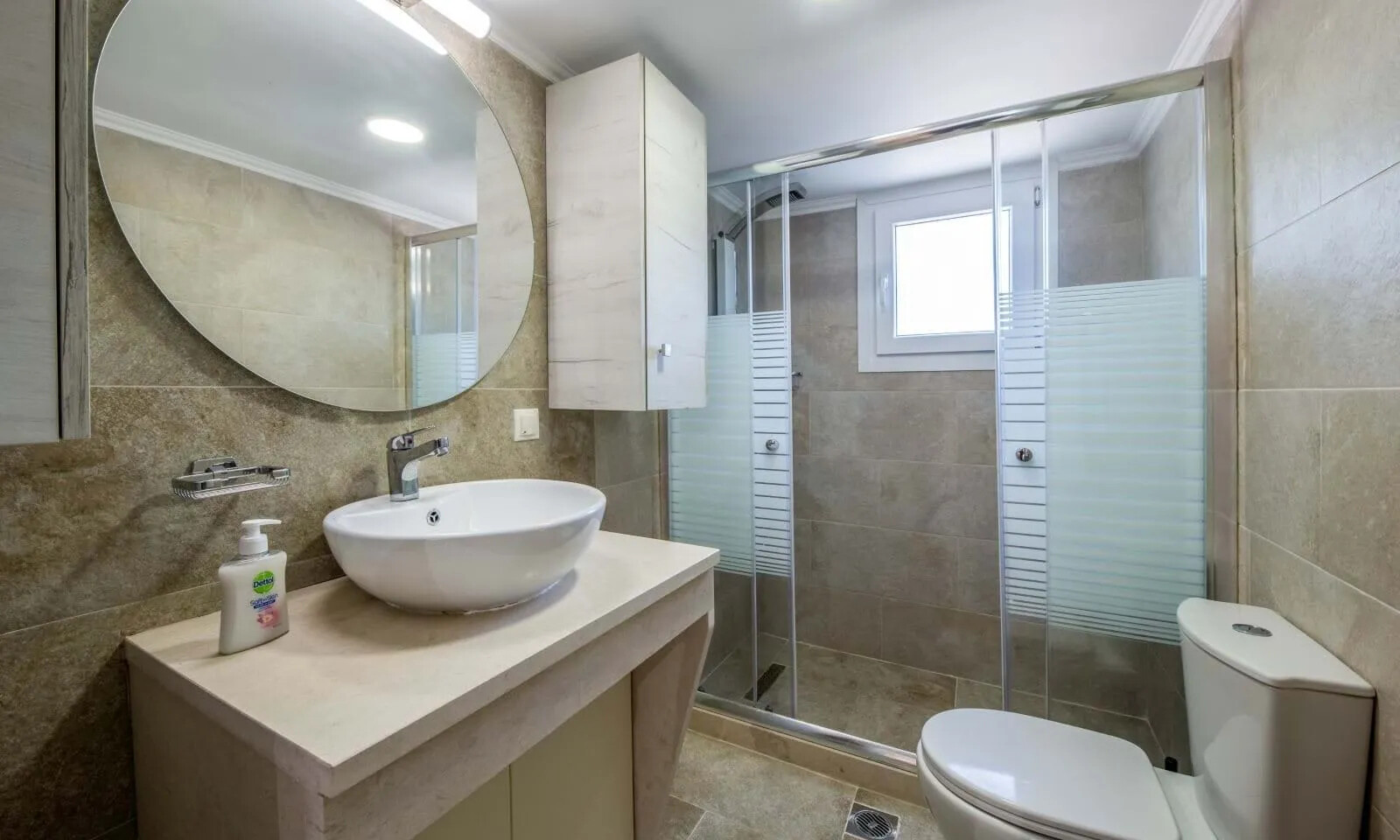 Upper Floor: Ascending to the upper floor, you’ll discover two more bedrooms, each with en-suite bathrooms and private balconies. These balconies offer stunning views of the surrounding landscape and the azure waters beyond, providing a serene retreat for enjoying the Mediterranean breeze.