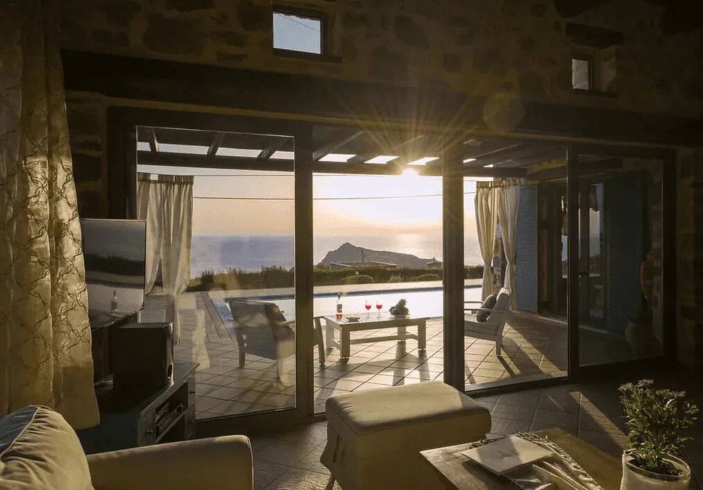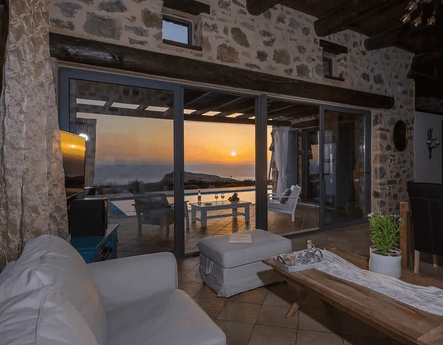 Villa For Sale in Kissamos Chania Crete delivers some of the most dramatic and beautiful sunsets in Crete, viewed from nearly every corner of the home.