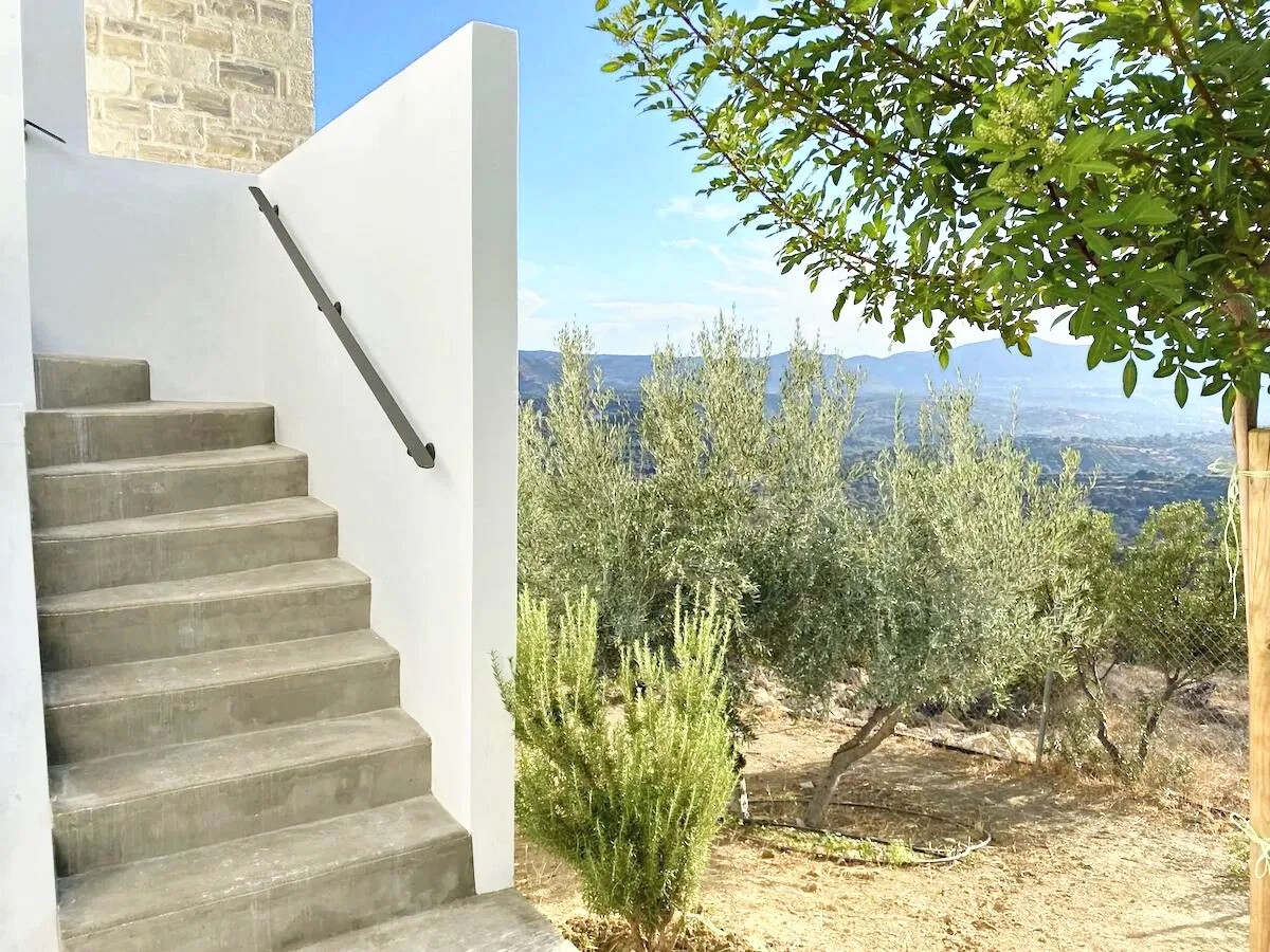 At the rear of the house, an external staircase leads to a terrace providing 360-degree panoramic views of the sea, the plains of Messara, the Psiloritis mountain range, and the Asterousia Mountains.