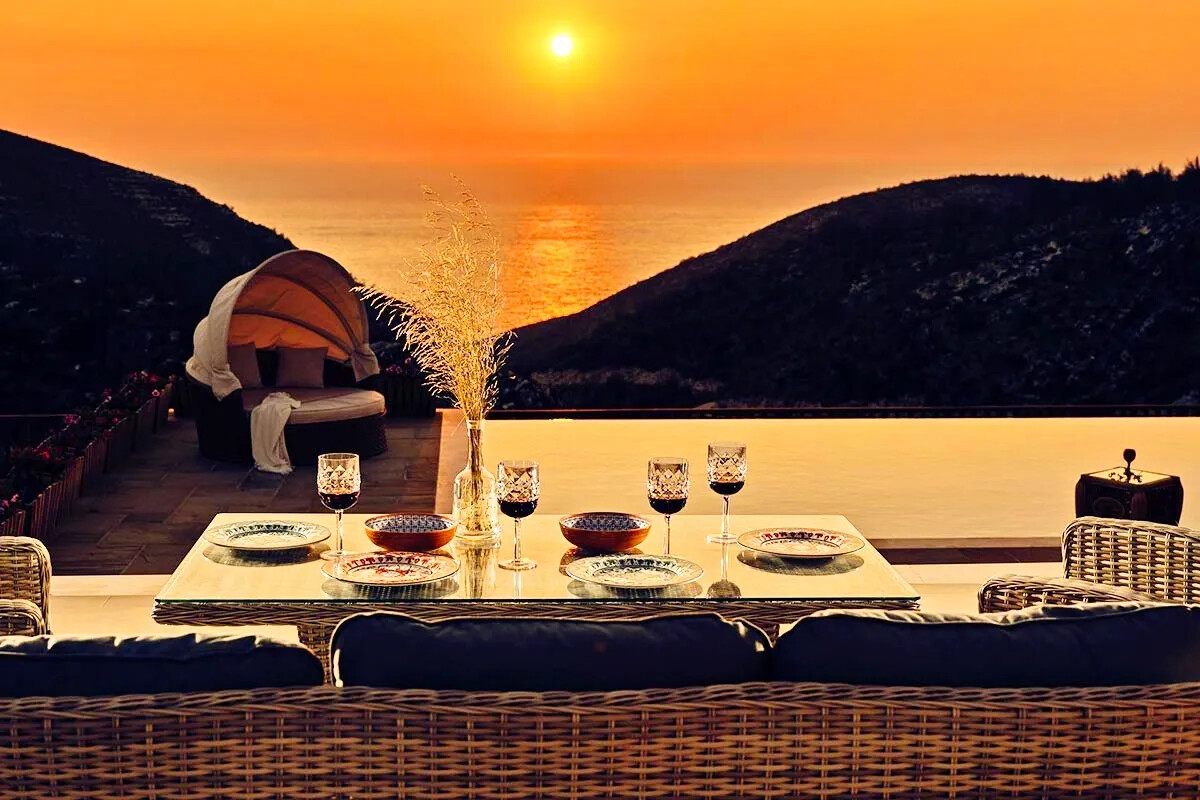 - Spacious living room with panoramic Ionian Sea views