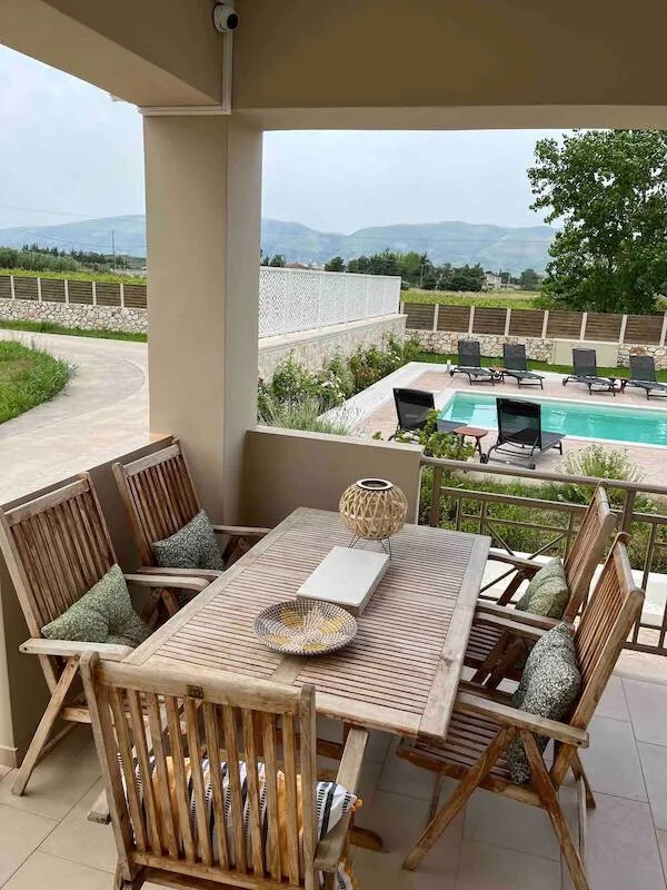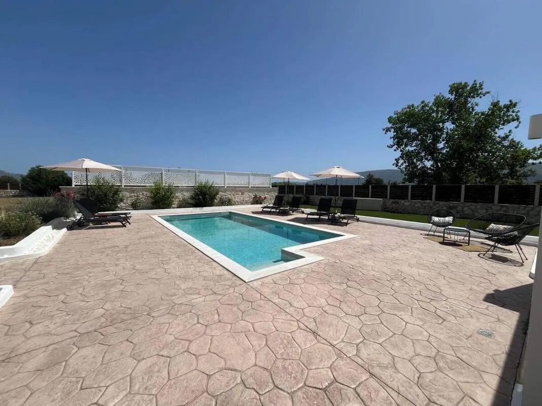An exquisite sunlit villa for sale on the island of Zakynthos, offering privacy, luxury, and a breathtaking natural environment. The villa is situated on a 6.5-acre plot surrounded by vineyards and traditional raisin-producing lands in a well-known wine-producing area.