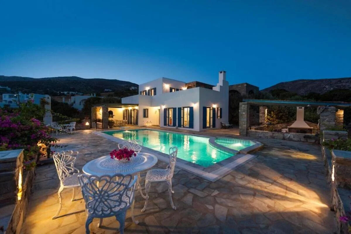 Nestled in the south part of Paros, this whitewashed masterpiece spans 400 m2, boasting understated opulence and a magical, relaxing aura. Located in Aspro Chorio, just minutes from the serene Lolantonis beach and the picturesque village of Dryos, this property offers uninterrupted sea views and embodies the essence of a successful summer retreat.