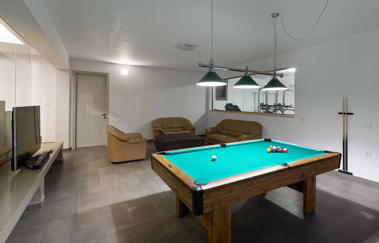 Each villa consists of three floors (basement-ground floor-floor) and can accommodate comfortable 8 persons. Includes 4 bedrooms, kitchen, dining room, living room-lounge, private spa, a private outdoor pool and BBQ. In addition, each villa has one more studio 2 in the basement of people with bath.