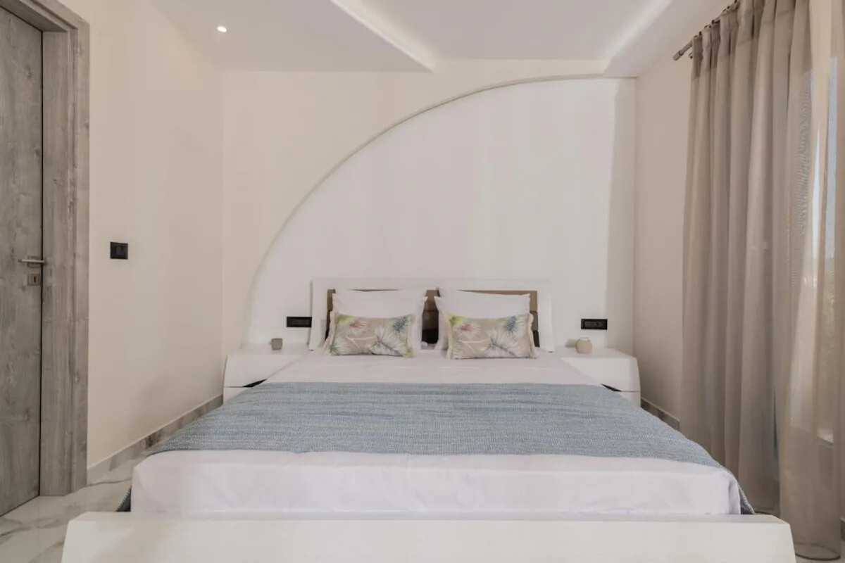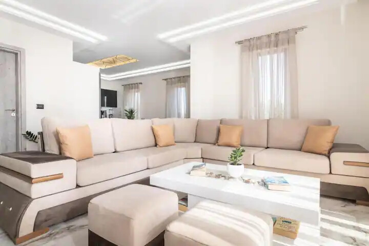 Newly constructed, elegant, and luxurious maisonette in a quiet area in Ampelokipi, Zakynthos, capable of accommodating up to 7 people. Comprising 3 bedrooms, each with a double bed and a private bathroom with a shower, the Villa also features a comfortable living room with a large corner sofa that can accommodate an extra person. The modern and fully equipped kitchen and dining area are of the highest luxury.