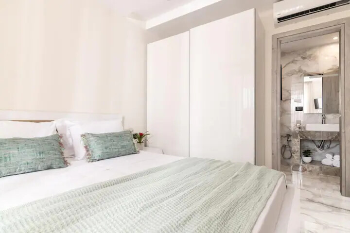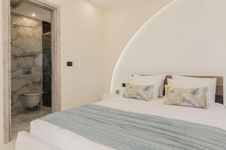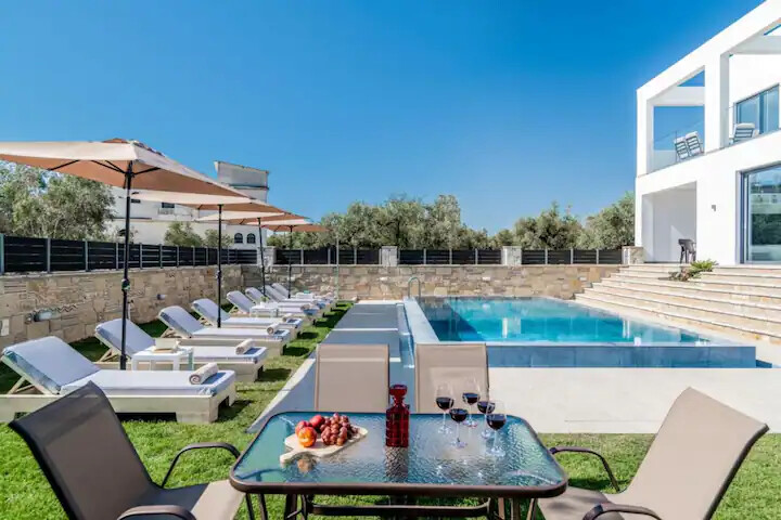 Surrounded by a lush green garden with a private pool, sun loungers, umbrellas, and an outdoor shower, the Villa is the perfect retreat. Prepare delicious meals on the built-in outdoor BBQ equipped with all necessary utensils and tools, as well as charcoal. On the first floor, furnished balconies provide a serene setting to enjoy the view of the olive grove surrounding the villa.