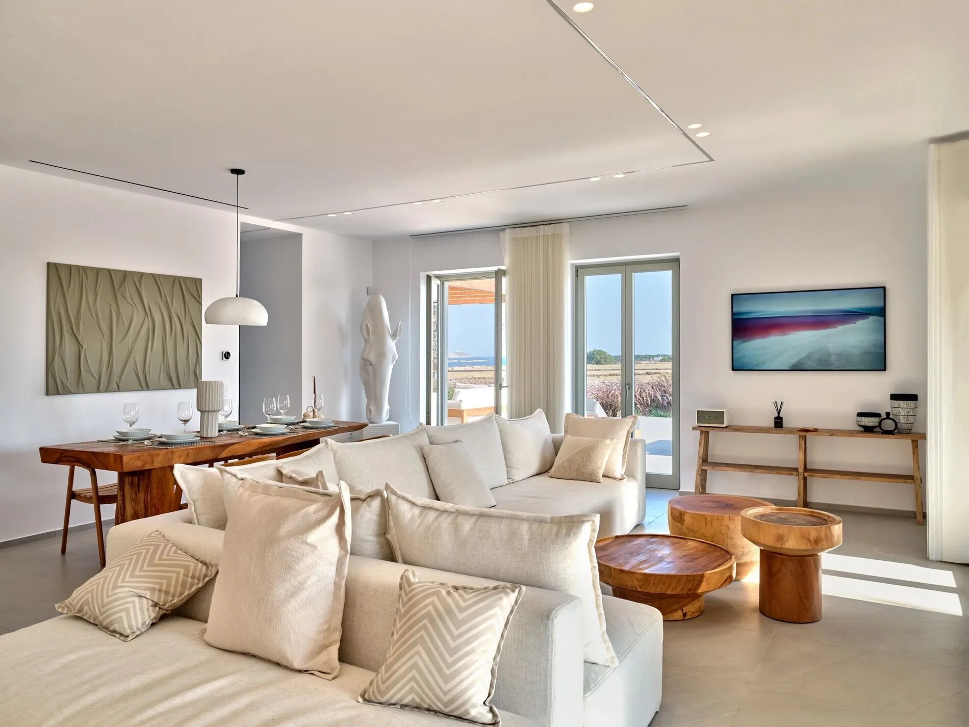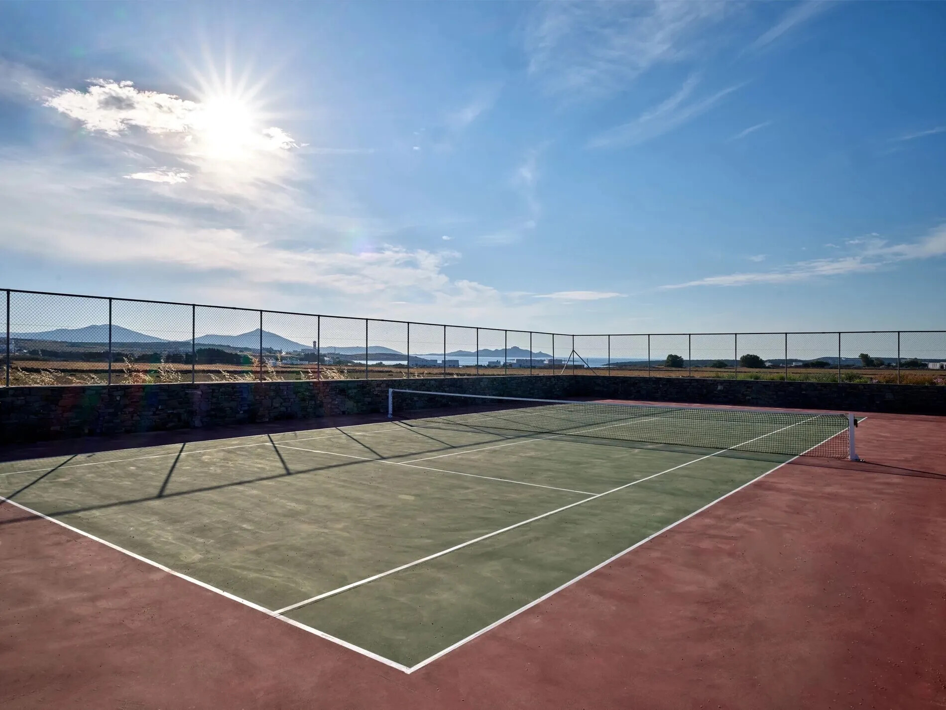 Villa With Tennis Court for Sale in Paros Greece is located near the renowned beaches of Santa Maria and Laggeri, offering easy access to pristine waters and sandy shores. The vibrant town of Naoussa, known for its traditional harbor, boutique shops, and nightlife, is just a short drive away.
