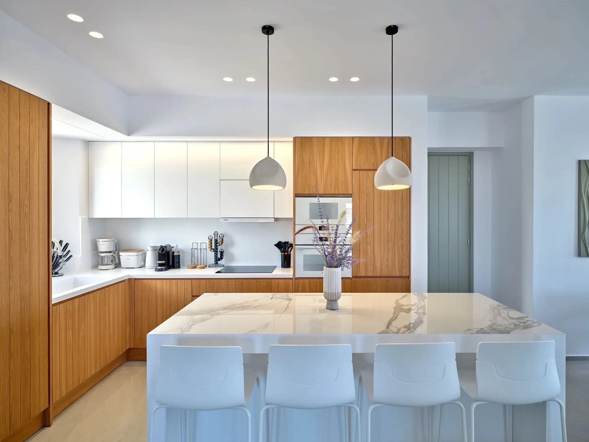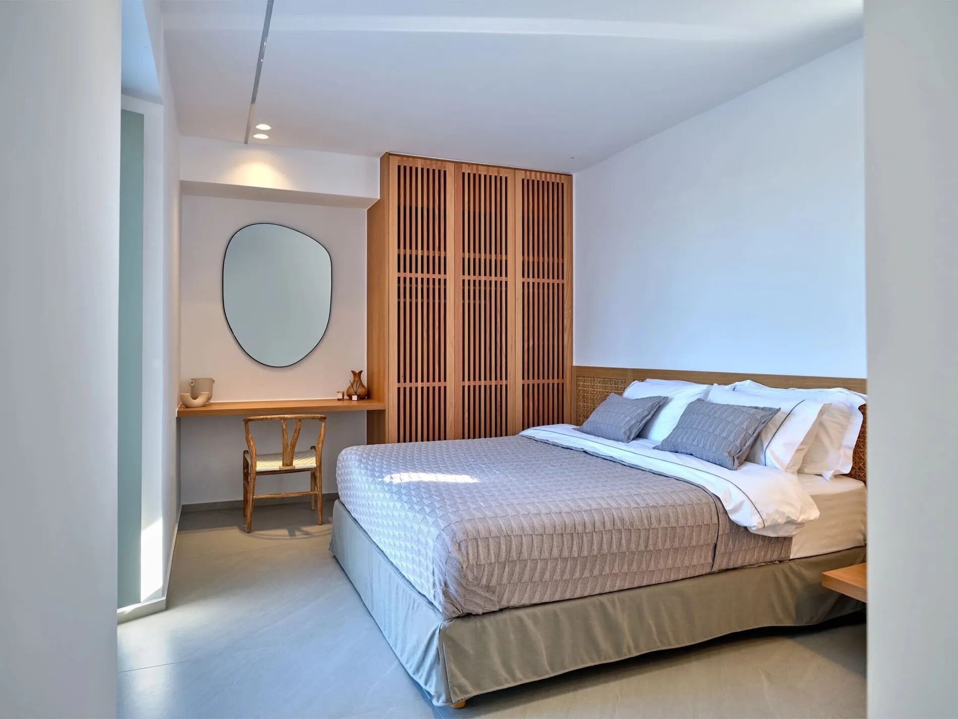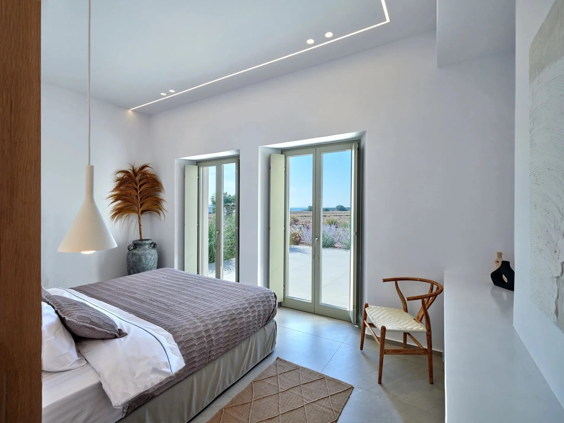 Villa With Tennis Court for Sale in Paros Greece includes six spacious bedrooms and seven bathrooms, all styled for ultimate comfort. Two of these bedrooms are located in separate guesthouses, providing privacy and autonomy for guests or extended family members. Every bedroom enjoys scenic views and calming interior tones.