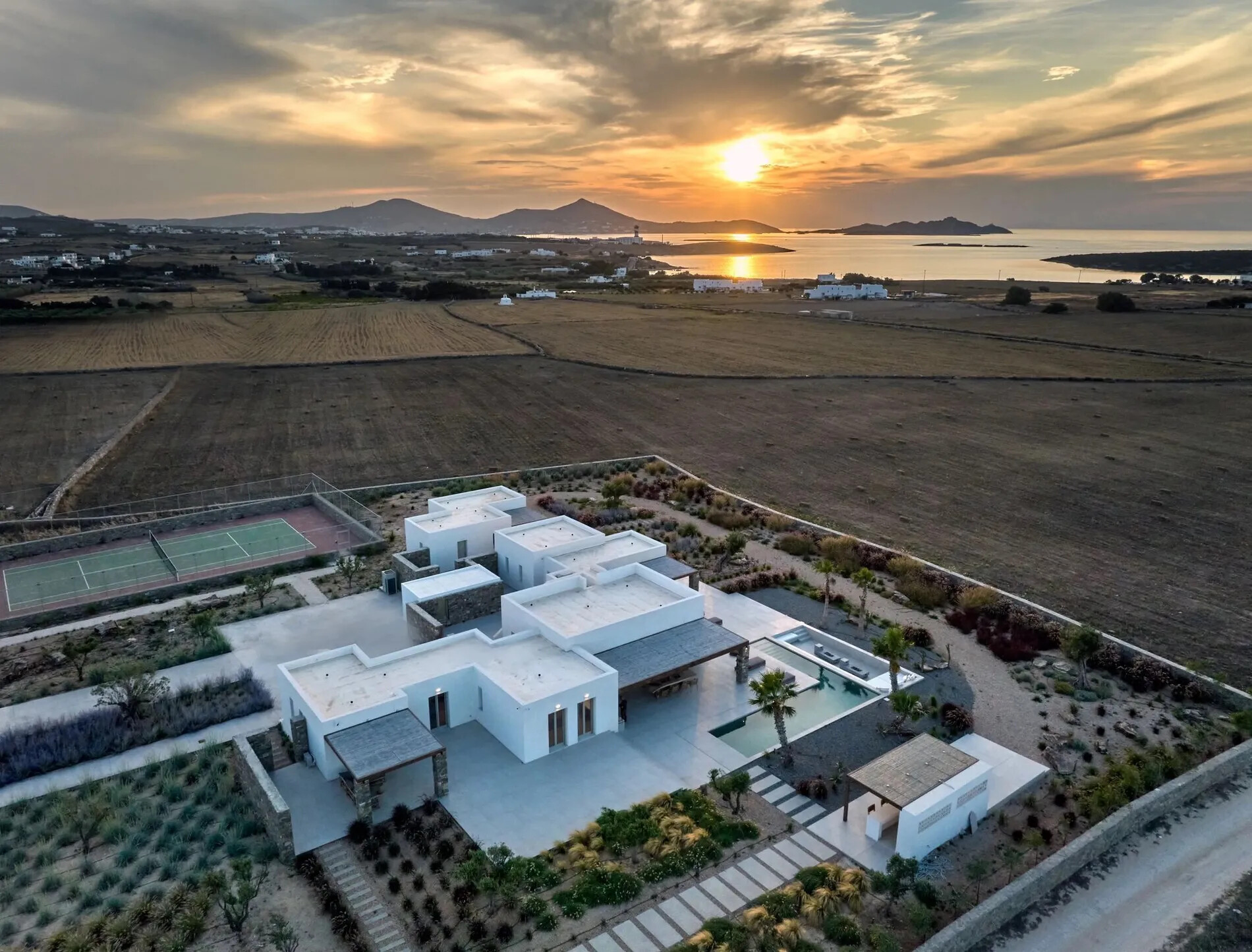 Villa With Tennis Court for Sale in Paros Greece offers an exceptional opportunity to own a luxurious residence in one of the most prestigious areas of the Cyclades. This newly built villa is ideally positioned on a picturesque bay, capturing unobstructed panoramic views of the Aegean Sea and glorious sunrises each morning.