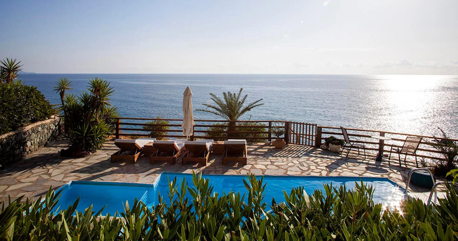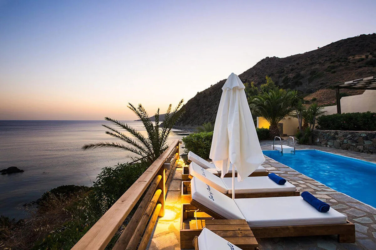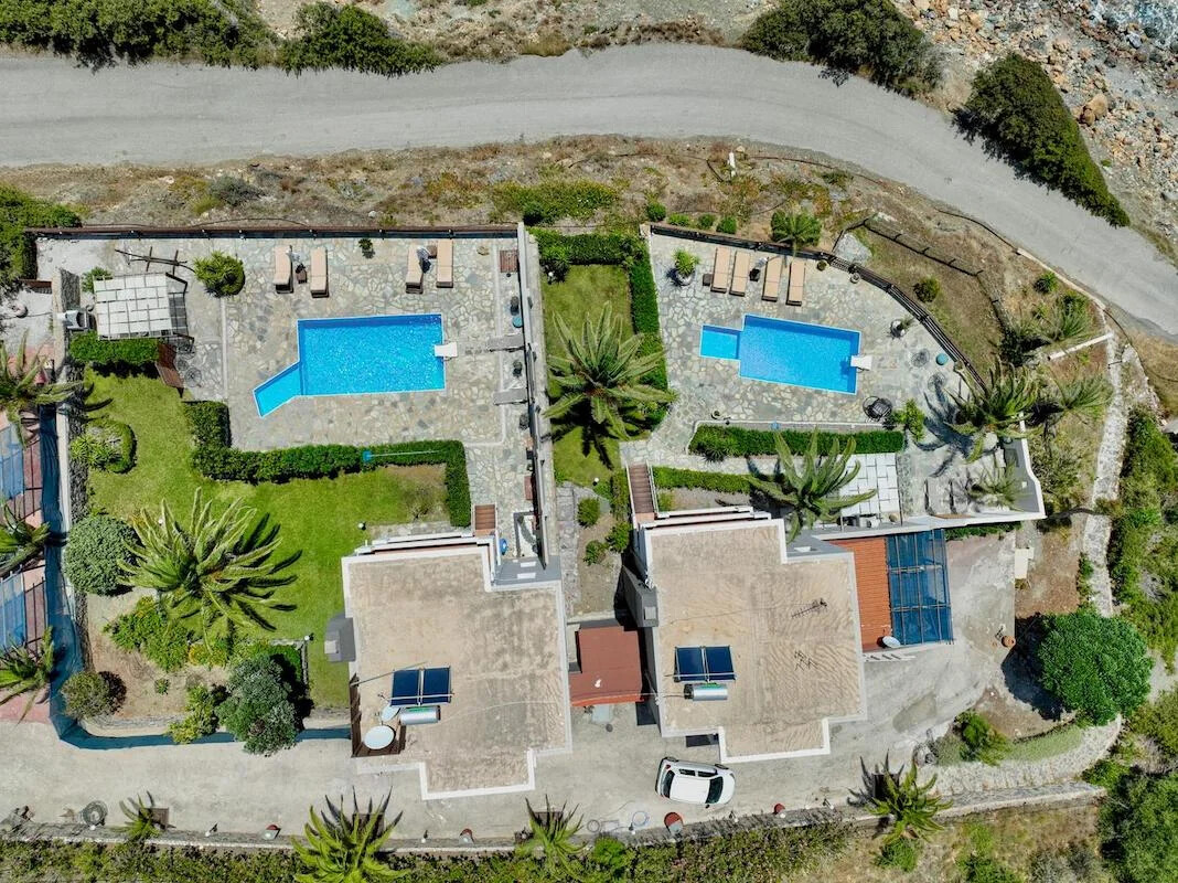 Each villa, boasting 105 sqm of living space, can host up to five guests and features a private swimming pool, two bathrooms, and a separate apartment for staff. Nestled on a beachfront plot of 4100 sqm, the unparalleled sea views make this private paradise ideal for those who appreciate the beauty of expansive vistas, accommodating up to 16 guests in luxurious comfort. Feel the gentle sea breeze against your skin as you wake up to the Greek sun, with interiors seamlessly blending with exteriors to envelop you in an airy atmosphere and the embrace of natural surroundings.