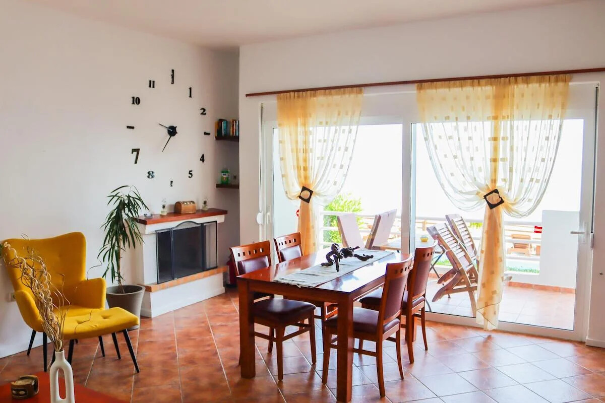 On the ground floor, each villa welcomes you with a living room adorned with a sofa bed, fireplace, satellite TV, and expansive windows revealing the crystal-clear waters of the Mediterranean. The fully-equipped kitchen, complete with all electrical appliances and a dining table for five, beckons culinary exploration.