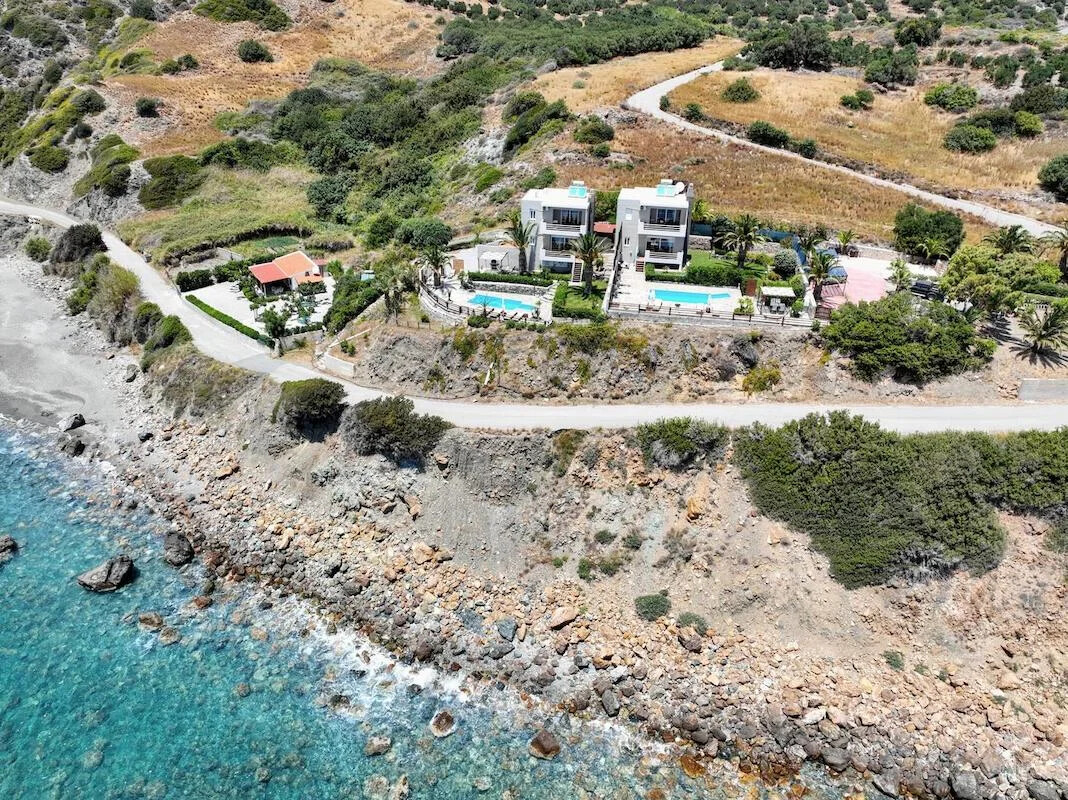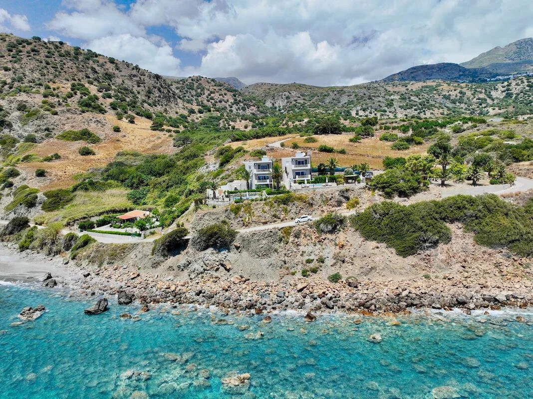 Awaken to the rhythmic melody of the ocean’s waves in these three serene havens, positioned a mere 10 meters from the sea and just a few kilometers from the renowned Prevelis Beach. Comprising 310 sqm of living space across two expansive beachfront villas and a charming cottage, all meticulously equipped with modern amenities and comforts.