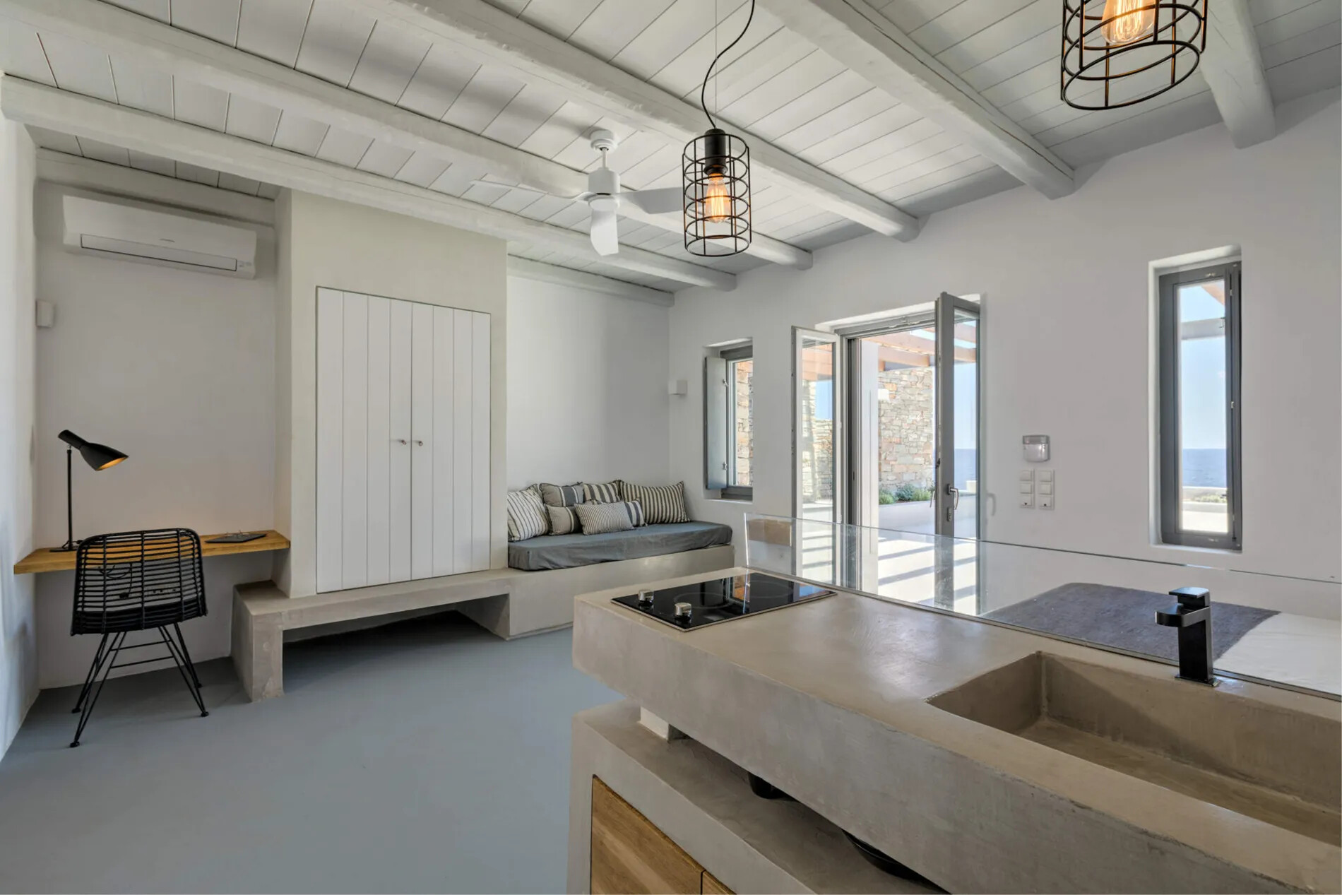 Located on the southeastern side of Kea, just a short drive from Koundouros and Kampi beaches,  offers an atmosphere of tranquility and relaxation. Enjoy mesmerizing sunsets and panoramic views of the Aegean Sea from the comfort of your own private sanctuary.