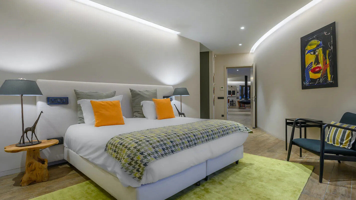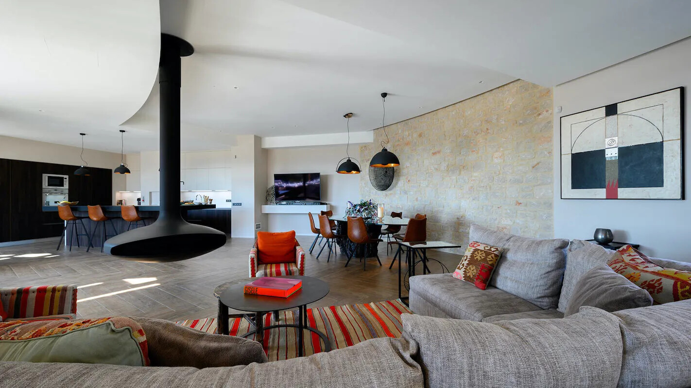 Designed with innovation and style, the villa’s round architecture seamlessly blends with its surroundings, creating a harmonious oasis of relaxation. Each room exudes warmth and charm, with vibrant colors and carefully selected furnishings adding to the inviting ambiance.