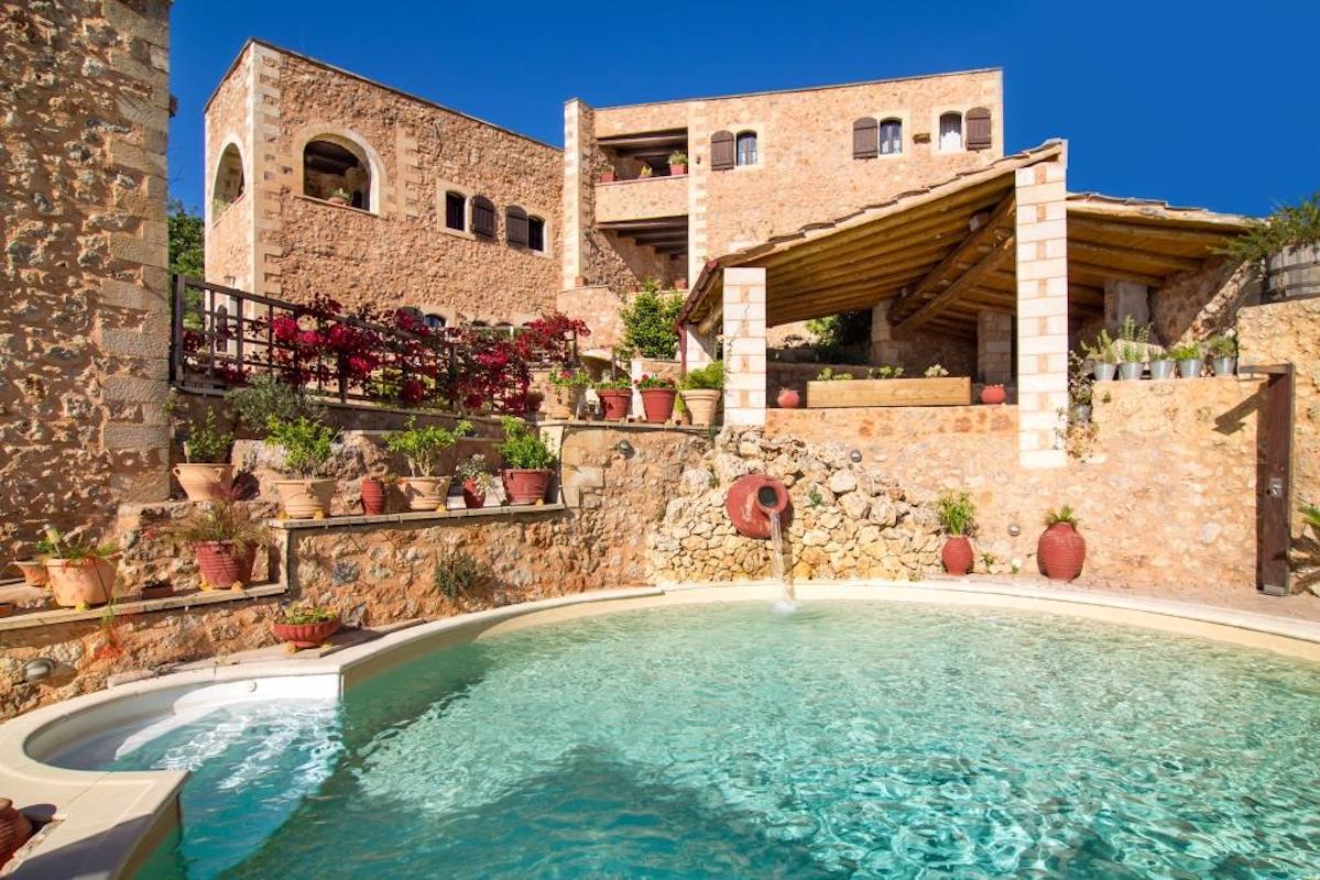 It could be described as a beautiful settlement in miniature, with strong elements of Cretan architecture built on the basis of the original buildings of 1913, and inside it one finds oneself in a place with the aroma and atmosphere of another era. There are the 5 stone-built maisonettes with a dominant element of stone and wood and they are built in levels, with wonderful courtyards, steps of poristone, flowers everywhere and a small pond with goldfish. In this fairytale setting there are a total of 6 buildings, 3 restored and 3 new, in harmony with the natural environment of the area and the traditional Cretan architecture.