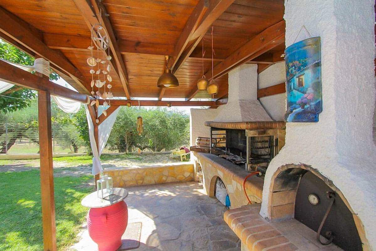 Entering the villa one can find a spacious, neoclassical comfortable living room with fireplace and TV, a fully equipped kitchen and a spacious dining room. The master bedroom features a double bed and en-suite bathroom with shower-cabin, whereas there are two more bedrooms with double beds and an additional one with two single beds convertible into a double.