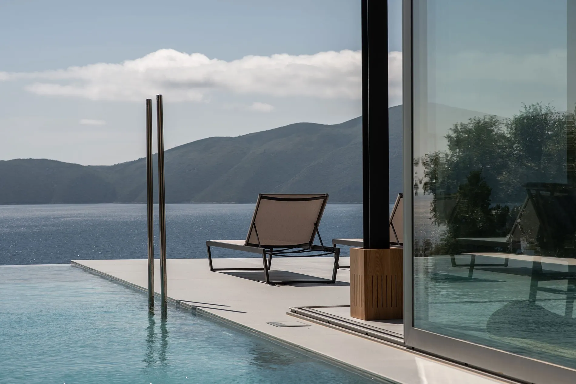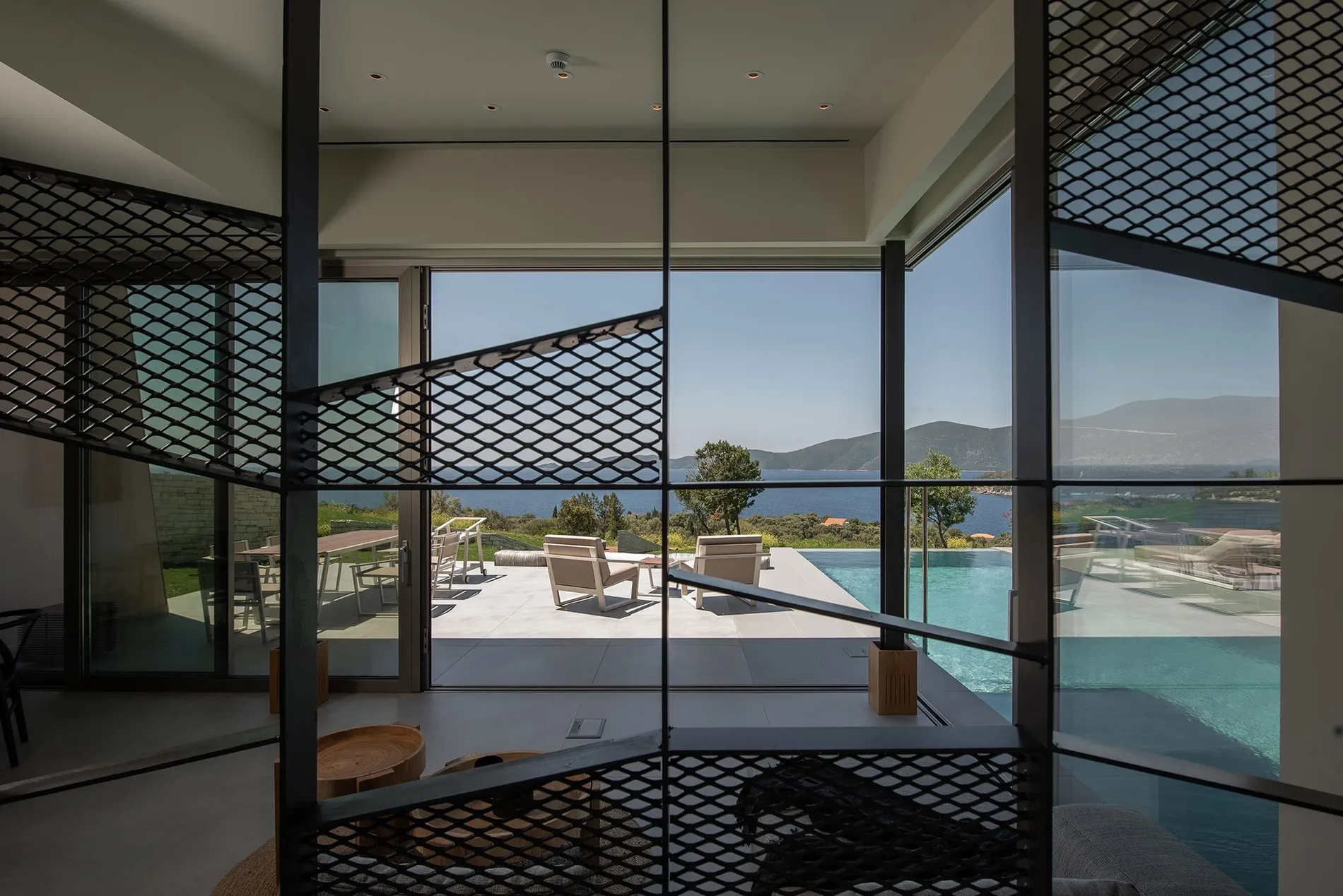 • Large sliding doors framing Ionian Sea views