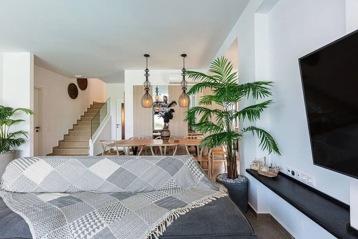 • Open-Plan Living Area: Spacious and airy with direct access to the pool. Features a 55” smart TV with Netflix and comfortable seating.