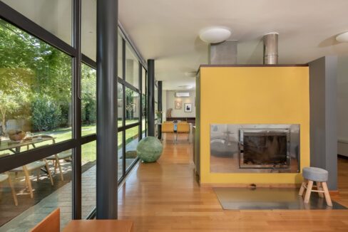 - Main Residence (Upper Floor): Features 3 bedrooms, 2 bathrooms, an office room, a kitchen with INOX appliances, and a spacious living room with a fireplace. Large glass surfaces ensure natural light throughout the space.