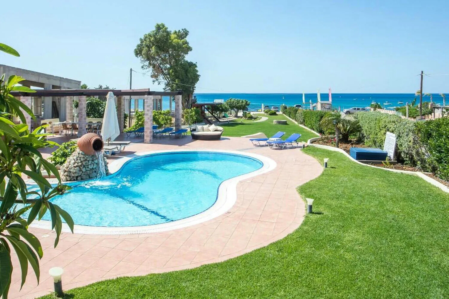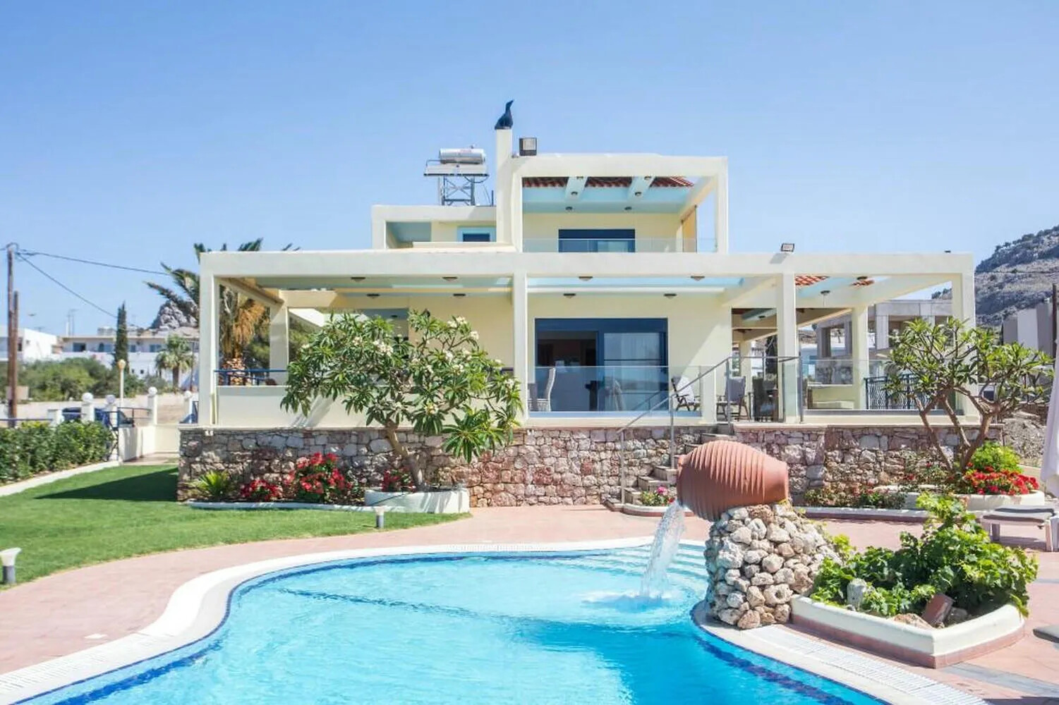 Beach Front Villa with Pool in Rhodes for sale features a well-appointed main residence with: