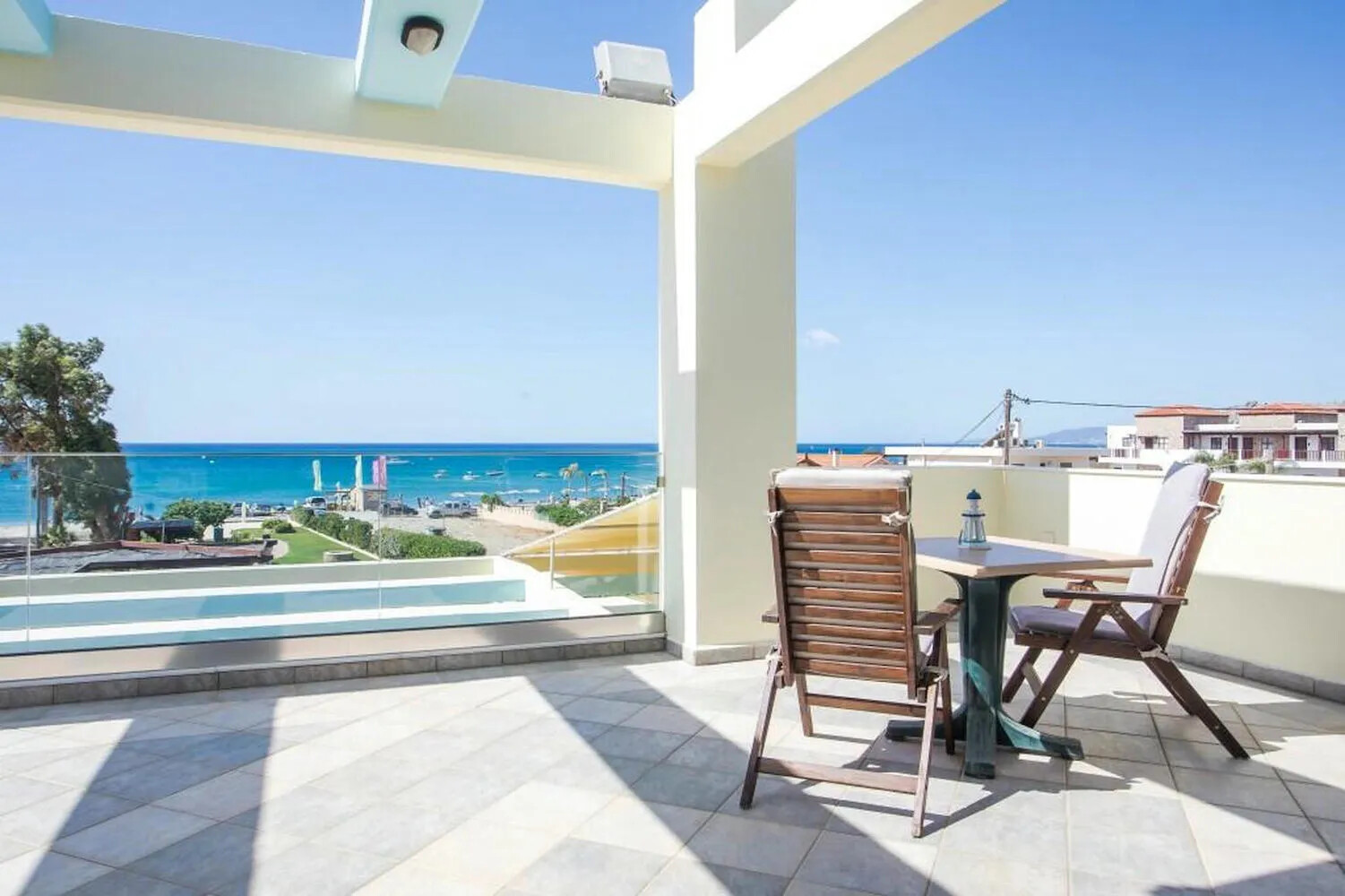 - First-floor balcony with panoramic views over the bay