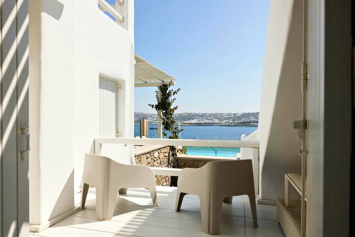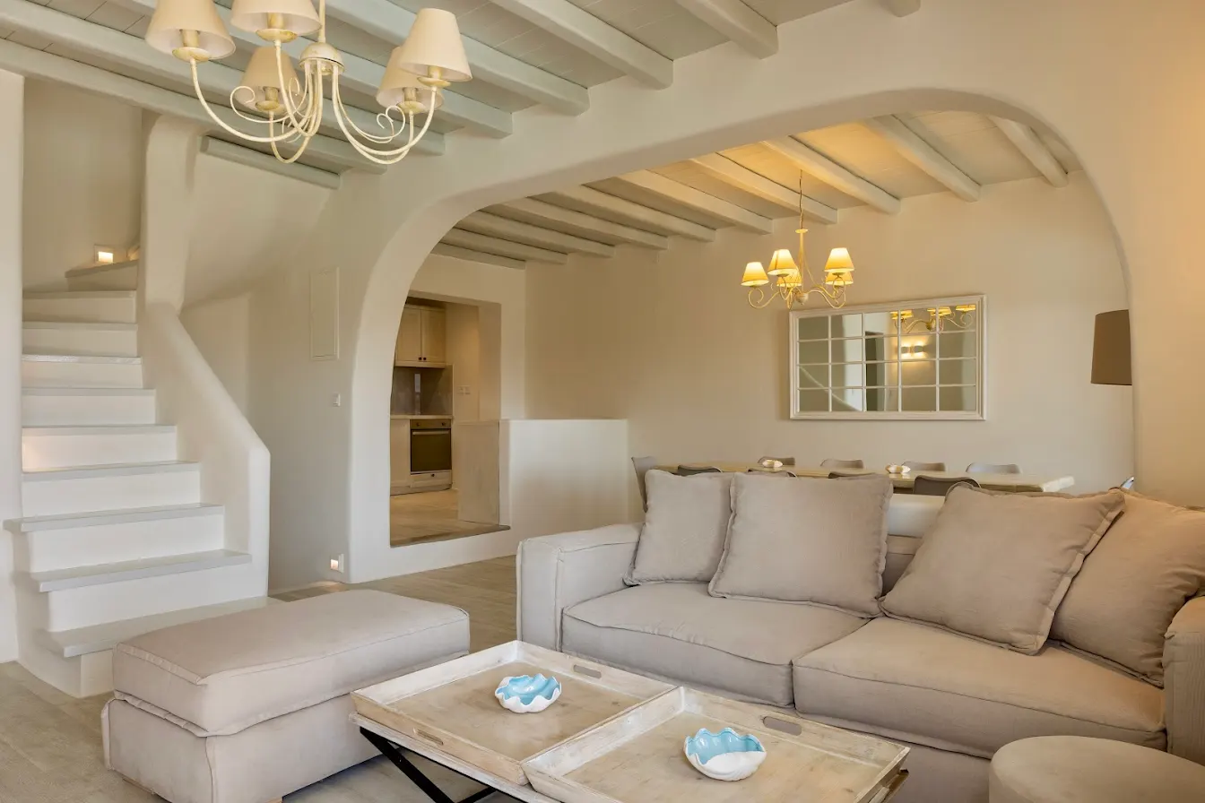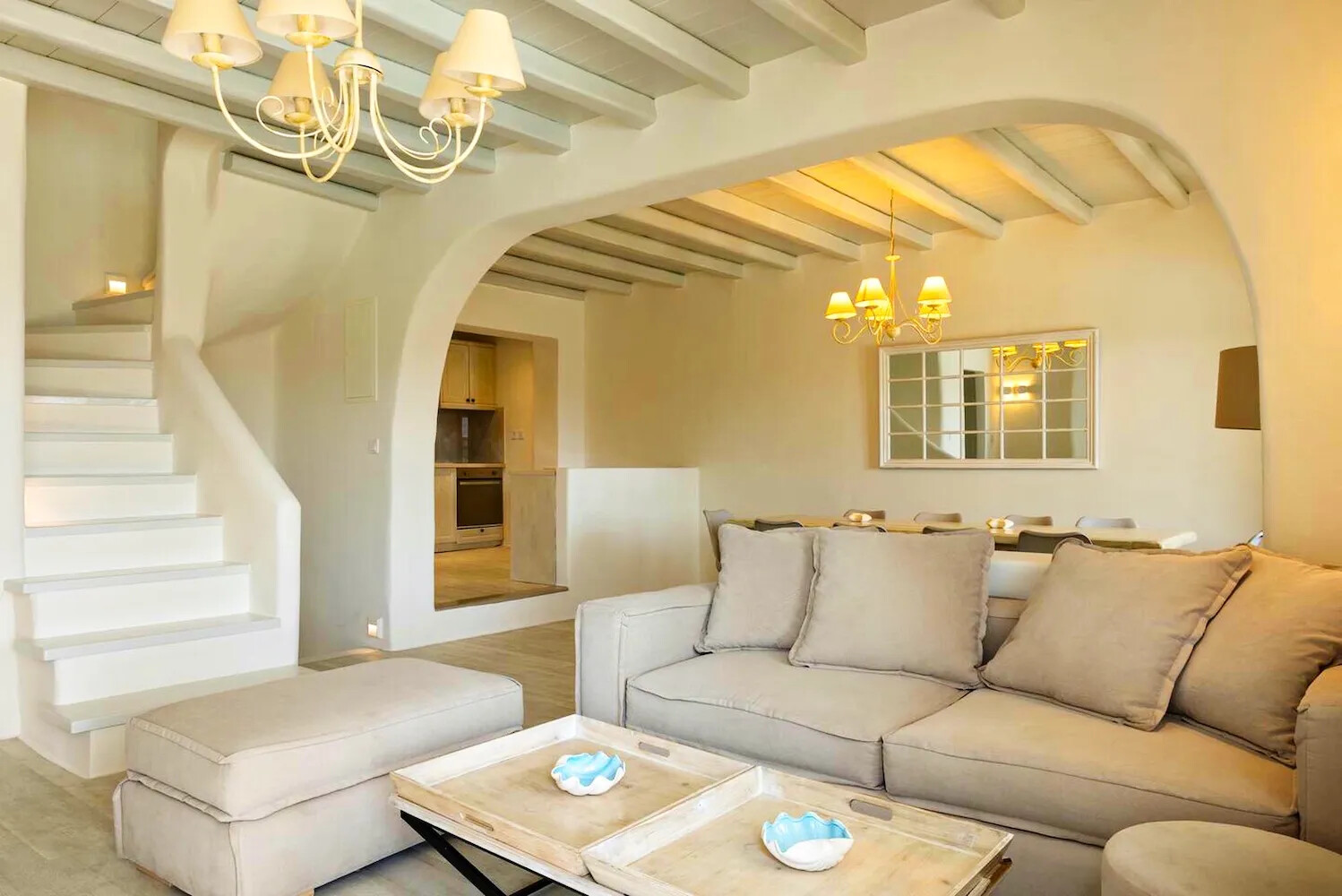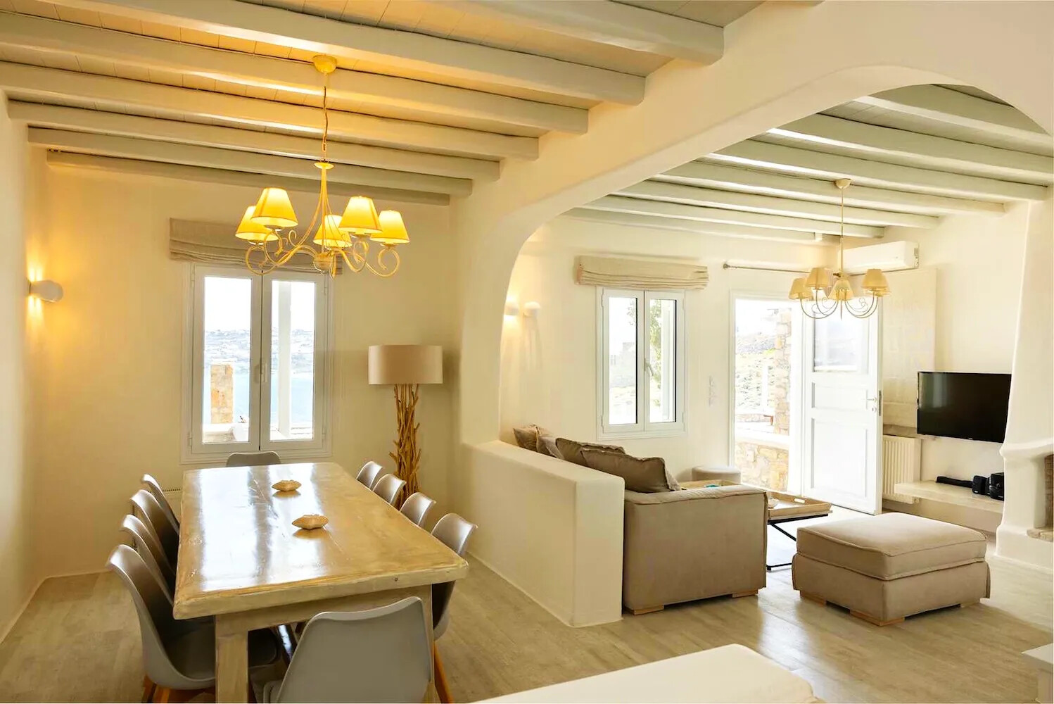 House for Sale with Sea Views in Mykonos with Private Jacuzzi & Panoramic is a unique opportunity to acquire a luxurious estate comprising two distinct residences: a four-bedroom maisonette and a two-bedroom apartment, each with private pools and breathtaking panoramic views of the Aegean Sea. This villa offers four luxuriously appointed bedrooms, each designed for maximum comfort. All rooms feature double beds and en-suite bathrooms with modern finishes, combining practicality and refined style. The ground floor includes a spacious living room, dining area, and a fully equipped kitchen. Large glass doors lead to the outdoor terrace, creating a seamless indoor-outdoor living experience. Ideal for guests or independent living, this apartment provides a cozy yet elegant atmosphere. With stunning sea views, this space is a sanctuary for both relaxation and entertainment. One of the most striking features of the House for Sale with Sea Views in Mykonos with Private Jacuzzi & Panoramic is the expansive veranda equipped with a Jacuzzi. It provides the perfect vantage point for enjoying the dramatic sea views and Mykonos sunsets. Each residence boasts its own private swimming pool, offering tranquil and secluded outdoor spaces. A shared pool is also available within the small complex, shared only with two other houses. Located in the prestigious Kanalia area, this House for Sale with Sea Views in Mykonos with Private Jacuzzi & Panoramic combines peaceful seclusion with proximity to Mykonos Town, Ornos Beach, and the island’s vibrant nightlife. This dual-residence property presents a significant investment opportunity in the Mykonos real estate market. It is ideal as a luxurious private residence or as a high-income rental property. House for Sale with Sea Views in Mykonos with Private Jacuzzi & Panoramic is more than a home; it is an experience. Contact us today to discover more about this exceptional offering. House for Sale with Sea Views in Mykonos with Private Jacuzzi & Panoramic