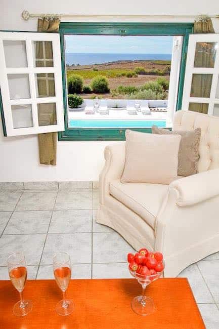 Distance to the Light House is 5 km. The scenic area of Fira is 11 km away. The nearest airport is Thira Airport, approximately 11 km from the property and the distance from Athinios Port is 8 km.