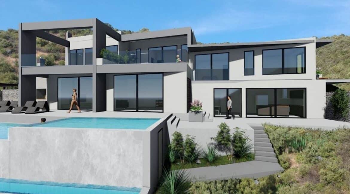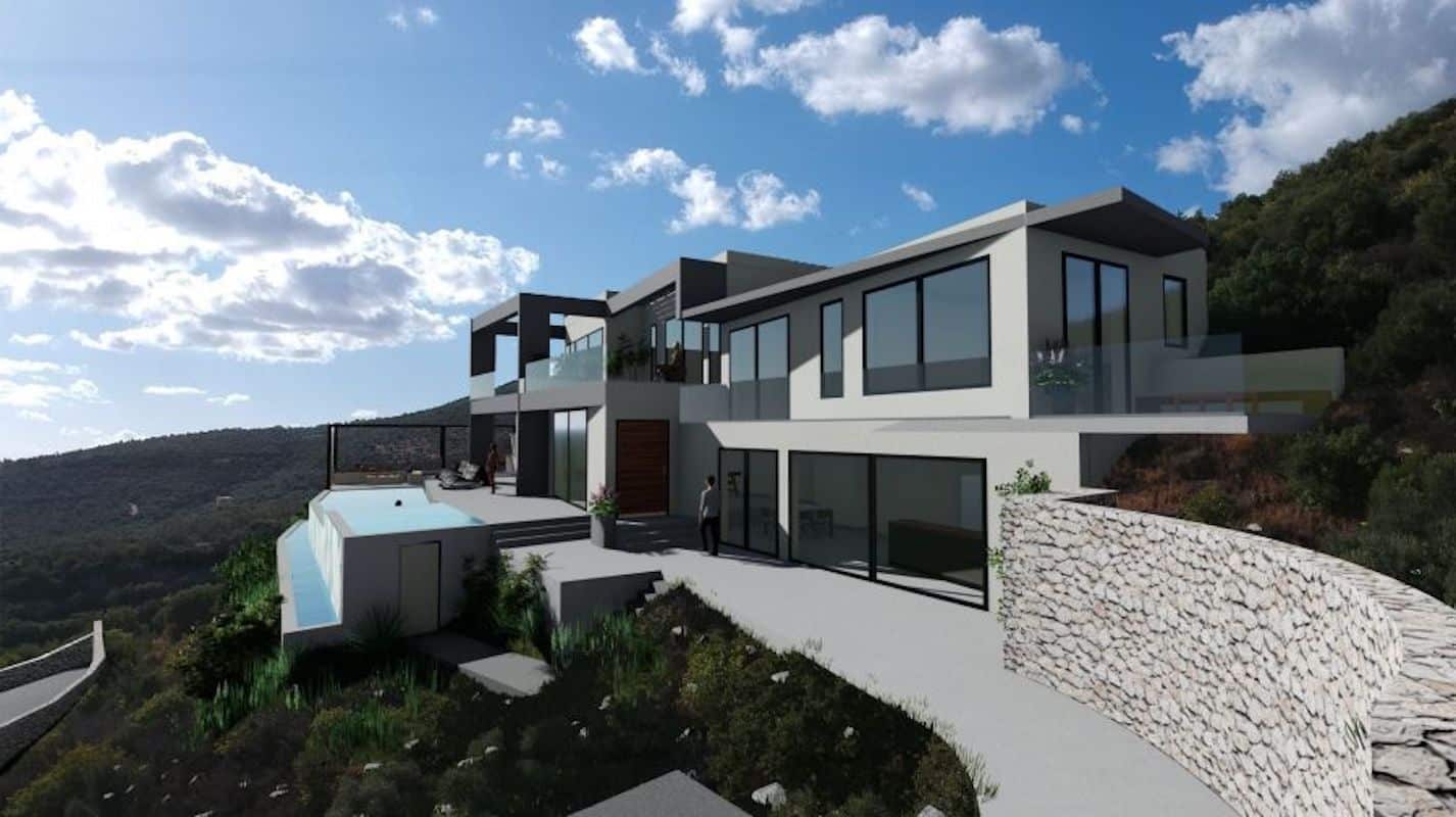 A modern villa under construction of 270 s.m. with amazing view to the sea, in a Mediterranean landscape , close to the beach on a 4000 s.m. plot