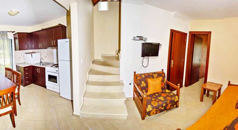 On the ground level, there’s a veranda (north side) and a large balcony (south side) just beside the bedroom. Every house is surrounded by gardens. Kitchen electrical appliances are: Large refrigerator, large kitchen/oven, dishwasher, coffemaker, kettle (available on request).