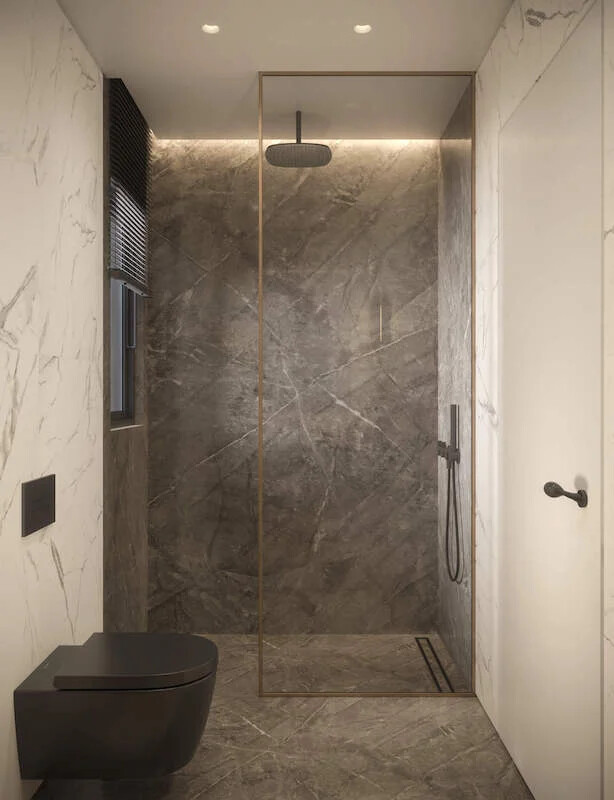 Upper Level: An internal staircase leads to the upper level (70 sq.m.), where you’ll discover two bedrooms, each featuring its own en-suite bathroom, and an office space.