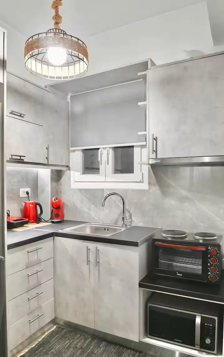 Located just steps from the famous black-sand beach of Kamari, this beautifully renovated 47 sq.m. apartment offers a stylish, modern living experience in one of Santorini’s most sought-after seaside locations.