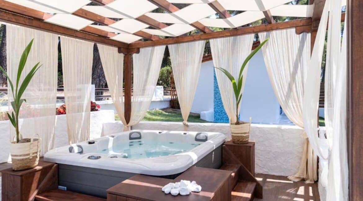 Beautiful garden is set in a very peaceful and cool pine forest, in close proximity to the loveliest beach in Sani.