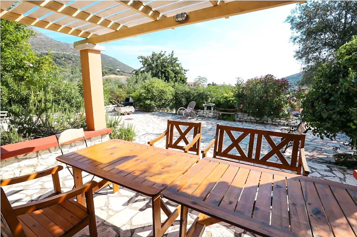 One of a few private houses is the small hamlet of Divarata which lies on the top of the cliffs where starts the road leading down to Myrtos. The villa enjoys a peaceful and private location with views across the surrounding valleys and mountains.