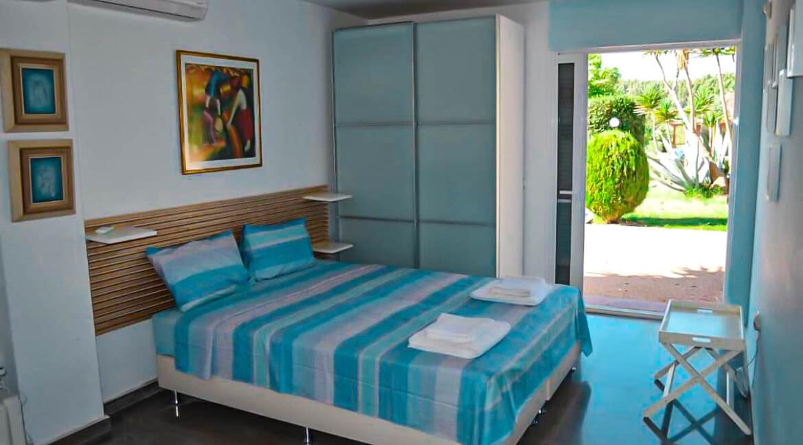 The residence has an outdoor – private large swimming pool that is 21 meters long with variable width (4 meters at its narrowest part and 6 meters at its widest) and depth (ranging from 1.00 to 2.40 meters). At the top of the pool is an elevated balcony with sun protection. Under the balcony, there is a warehouse with machines and materials used by the gardener. In addition, under the pool, there is a large warehouse that contains the machinery for the pool.