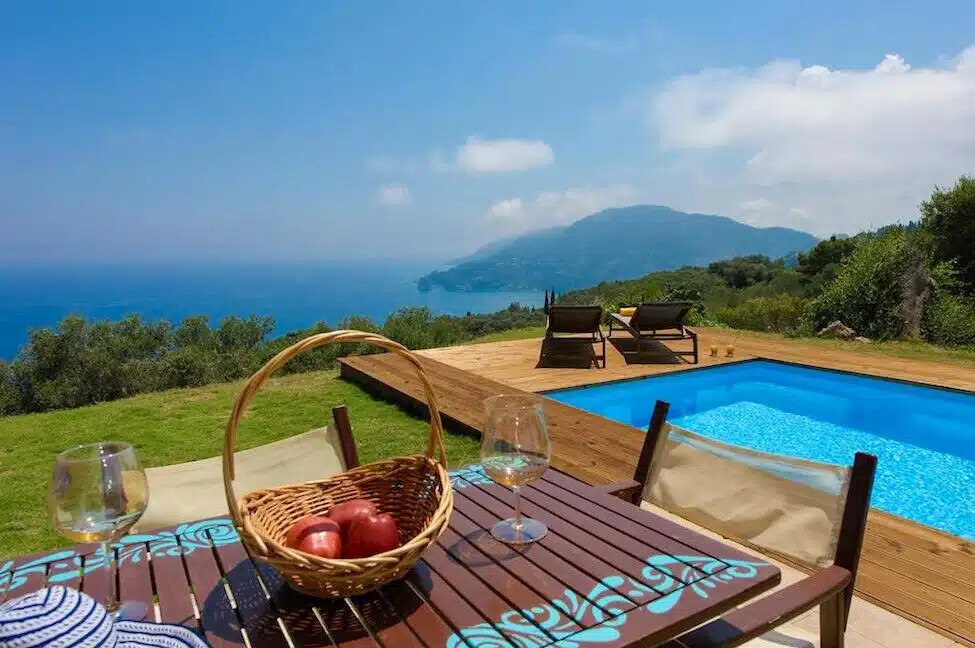 The villa is located above Agios Gordios beach with the soothing water, just 2.5km away, and Corfu Town/ airport/ port about 12 klm.