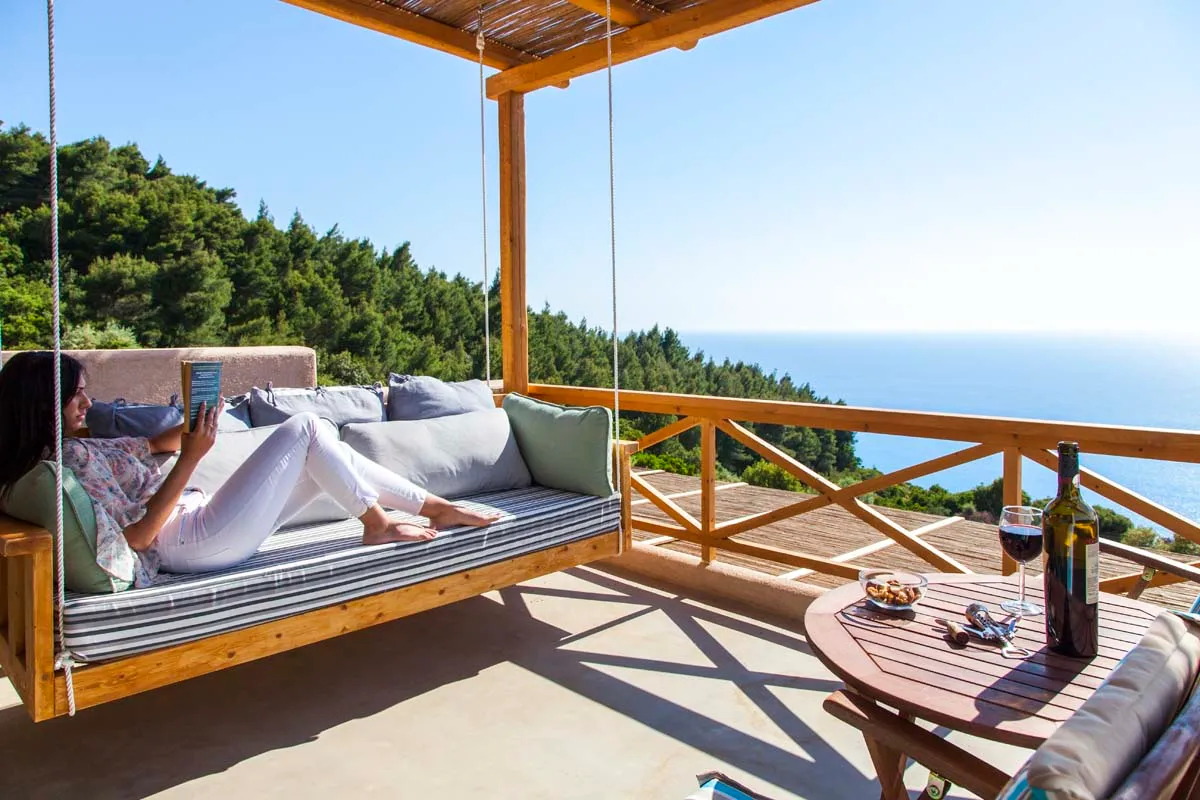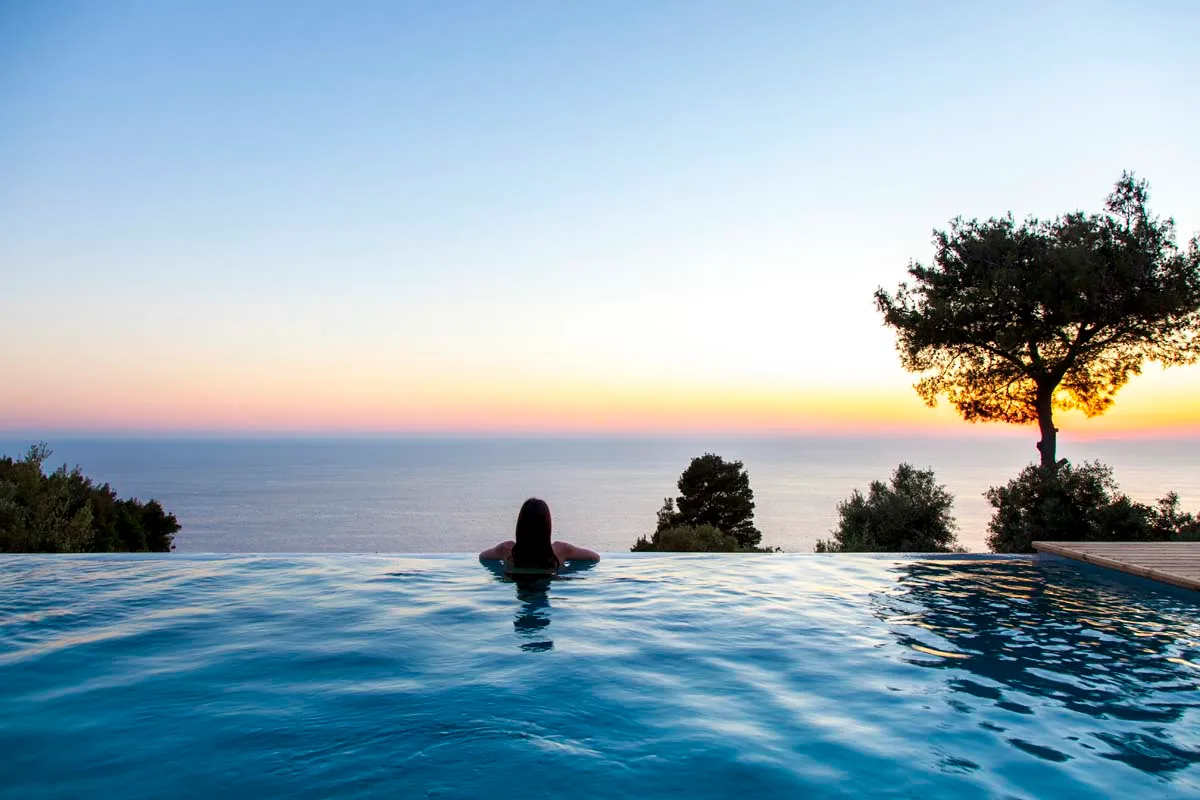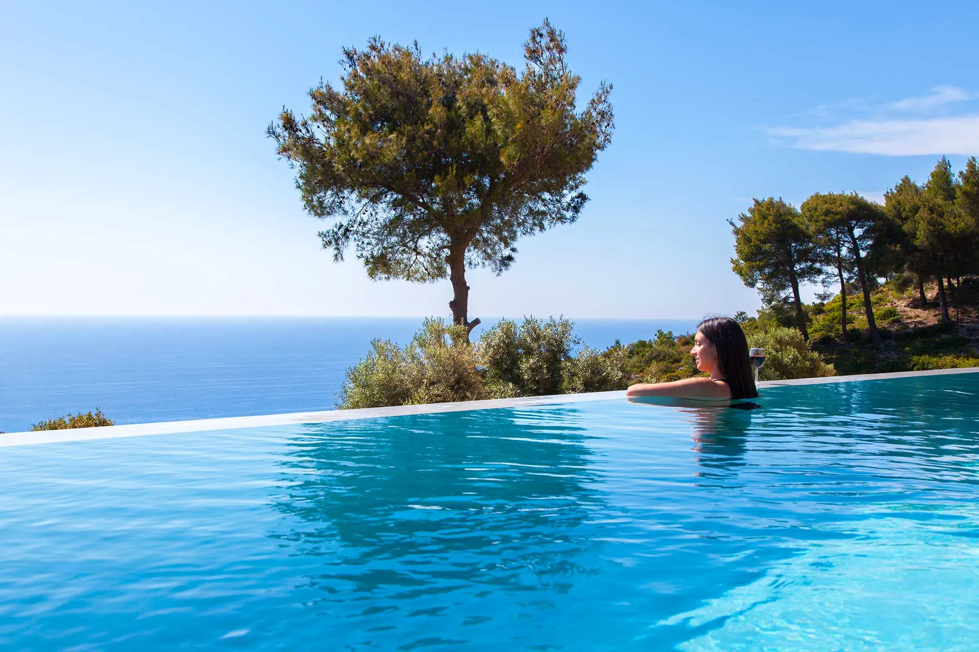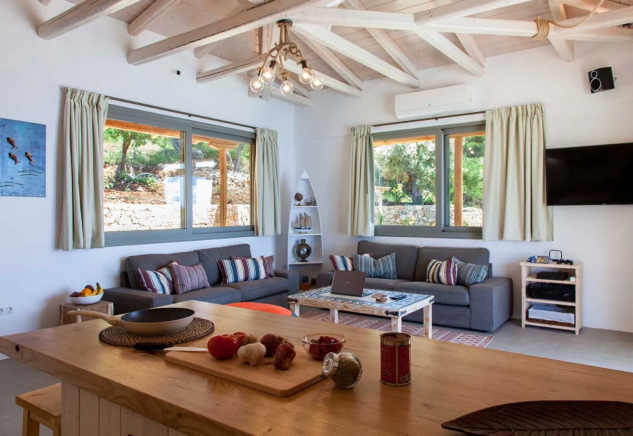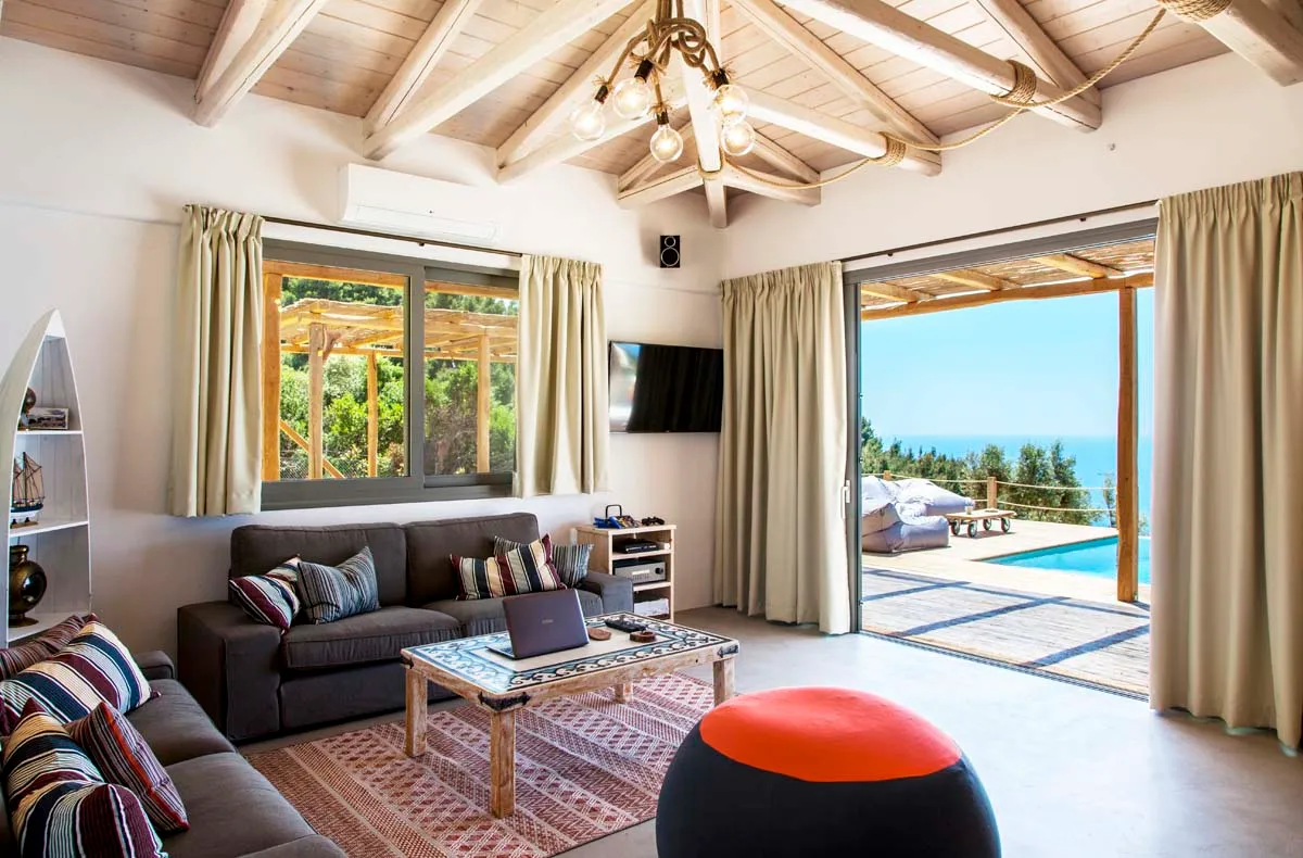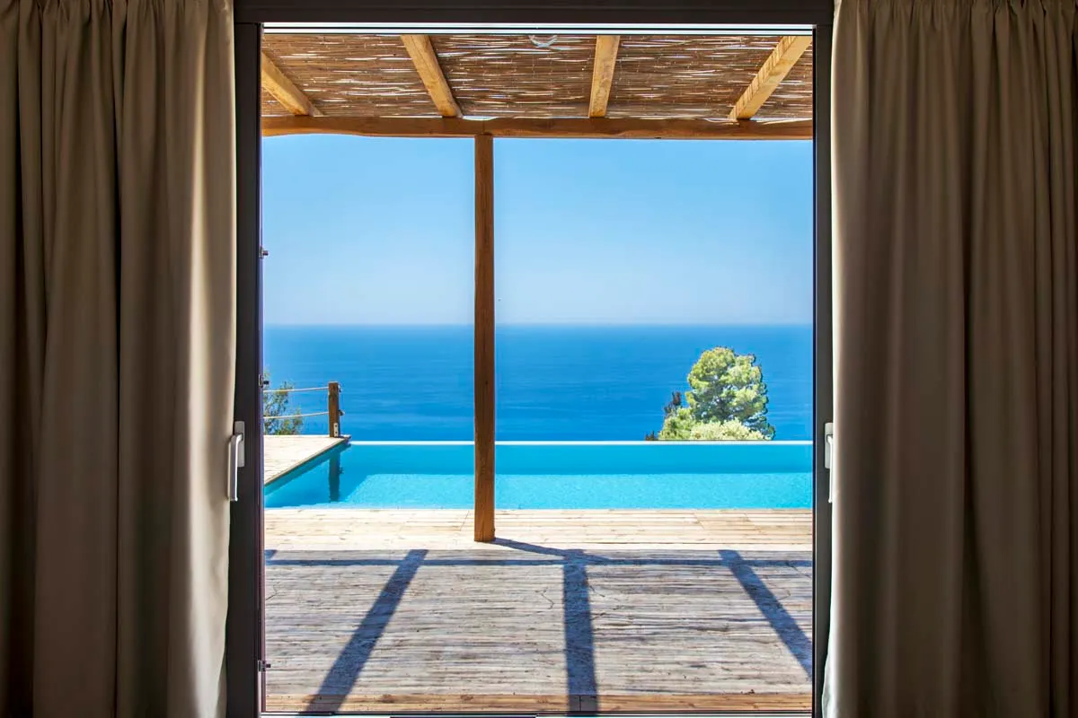 The villa’s elevated position ensures total privacy and unmatched panoramic views of the sparkling Ionian Sea.