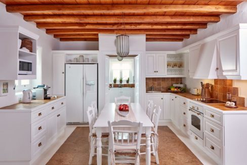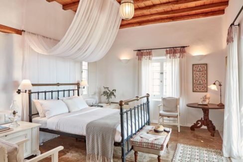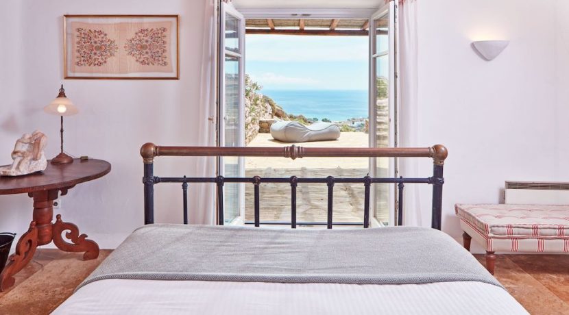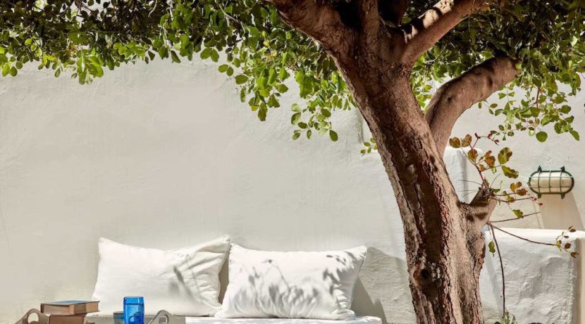 There is a place in Mykonos where only your imagination is the limit. Defined by a spirit of relaxed luxury, The Observatory is a property thoughtfully designed in a secluded, large and gated land of 10,000sq.m. It consists of four independent houses where the rooms are spacious enough to fit 12 people and are decorated with selected minimal furnishings of antique items and fine art. Walk on the golden brown marble floors and gaze at the wooden ceilings the gravures and ceramic plates on the walls that contrast with the whitewashed spaces.