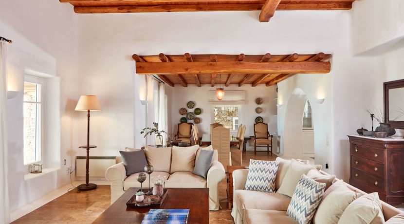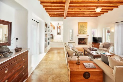 Villa designed as a complex of 4 independent houses and contains in total 6 bedrooms. The overall accommodation is 600sqm and is built on a large gated plot of approx 10,000sqm in Agrari Beach, one of the nicest on Mykonos. It enjoys exceptional views, a private swimming pool and a Jacuzzi.