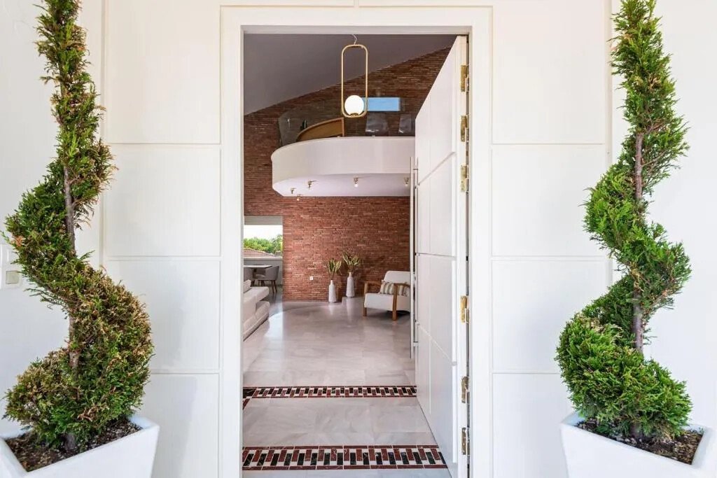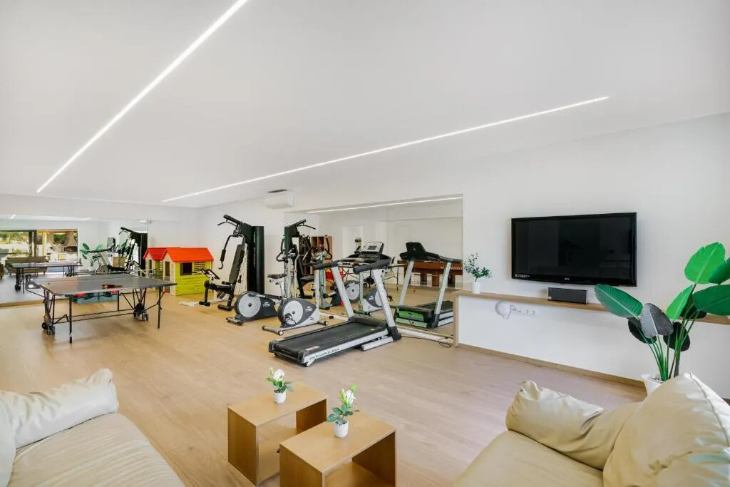 This villa offers an array of luxurious facilities, including a playground, playroom, fully equipped gym, and a 120 sq. m ecological swimming pool. You’ll also find a barbecue area with a dining table, a basketball court, and table tennis. The villa is surrounded by trees, gardens, and boasts amazing views from various sitting areas. There’s even a walking path through the gardens and an outdoor hot tub to further enhance your experience.
