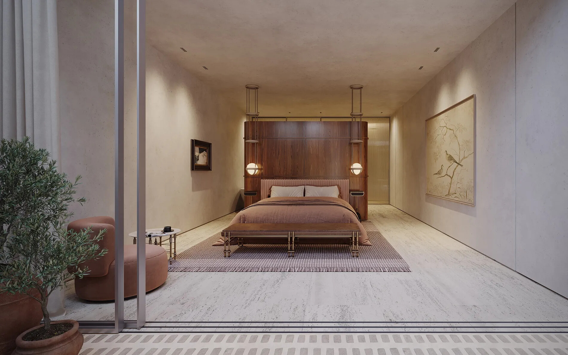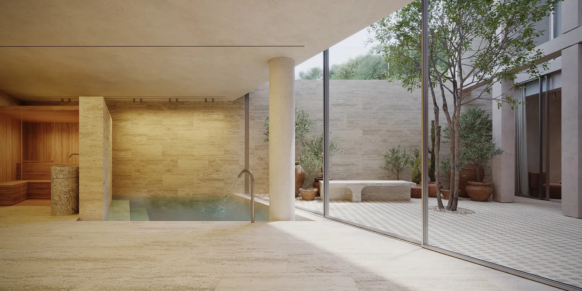 The lower level of the villa offers a unique wellness space, which includes a sauna, jacuzzi, and an additional bathroom. It also houses a bedroom with an en-suite bathroom, making it an ideal area for guests or family members to enjoy their own private retreat. A cozy sitting area adds to the comfort of this floor, offering a space for relaxation and rejuvenation.