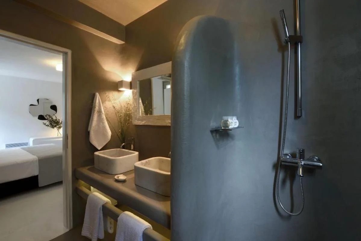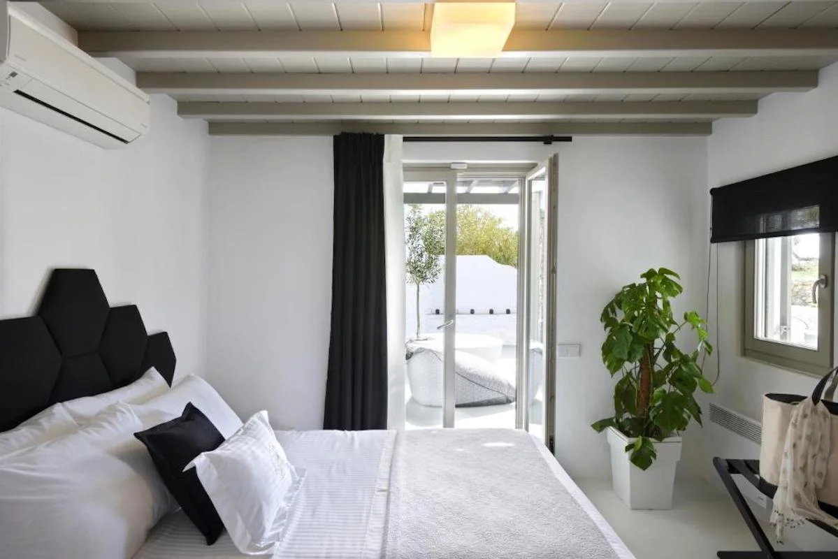 The villa is spread across two spacious levels, seamlessly combining traditional Mykonian architecture with modern amenities.