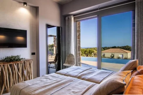 This luxurious villa is located in Leivatho, specifically in the Karavados area of Kefalonia. The uniquely designed villa comprises two bedrooms, a living room, kitchen, and two bathrooms.