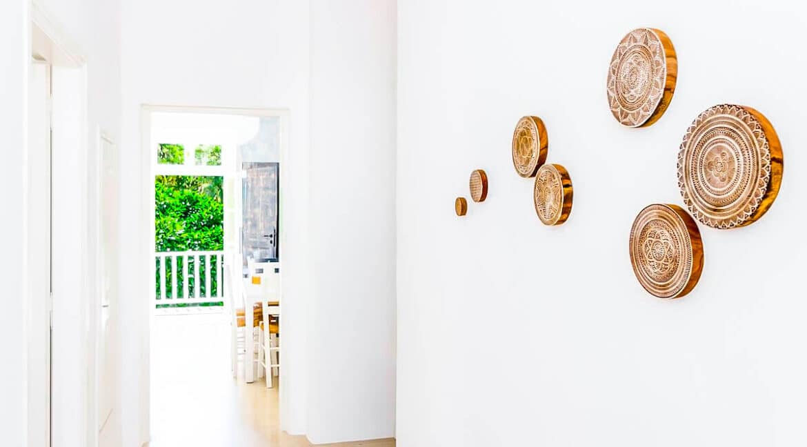 On two levels, this intriguing home offers open plan living on the upper level, with marble floors, pale blue decor and traditional features. The simplicity of the minimal design makes a particular impact in the three bedrooms where cool white walls and linens inspire relaxation.