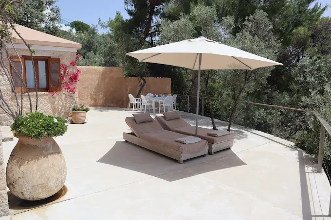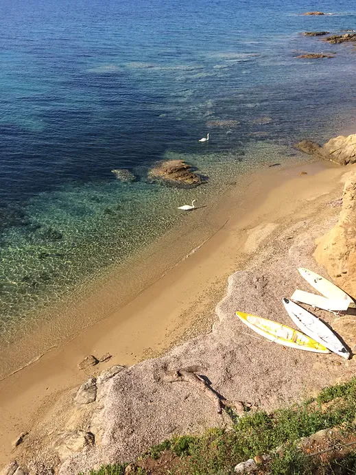 Spend your days sunbathing on wooden decks and loungers, swimming in crystal-clear waters, or paddling to the nearby deserted islet of Troulonisi. Two canoes are kept on the beach for leisurely exploration, while the adjacent organized Troulos Beach is within walking distance for water sports and amenities.