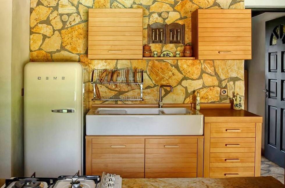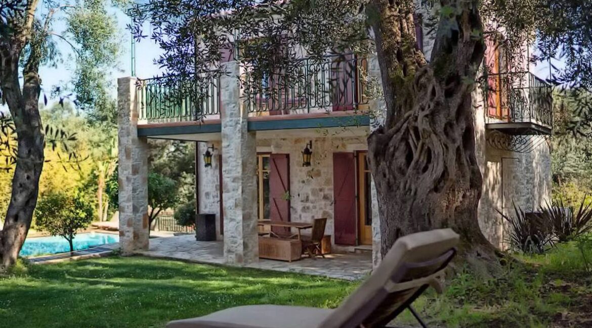 Set on 7,000 sqm of land which has sea frontage and direct access to the beach on a secluded hillside, amidst lush olive groves, this Estate consists of 1 villa and 2 bungalows surrounded by a beautiful garden with a pool. The beach of Agios Spyridonas is 500 meters away. The stone-built holiday complex features romantic, country-style interiors with distressed wood furnishings, organic materials and hand-painted details. Each unit consists of 2 bedrooms, a living room and a fully equipped kitchen.This unique Estate is made up of a small hamlet of properties all of traditional Corfiot architecture and is harmonically met with modern day aesthetics. A small stone path leads from the property directly down to a small , very secluded beach.