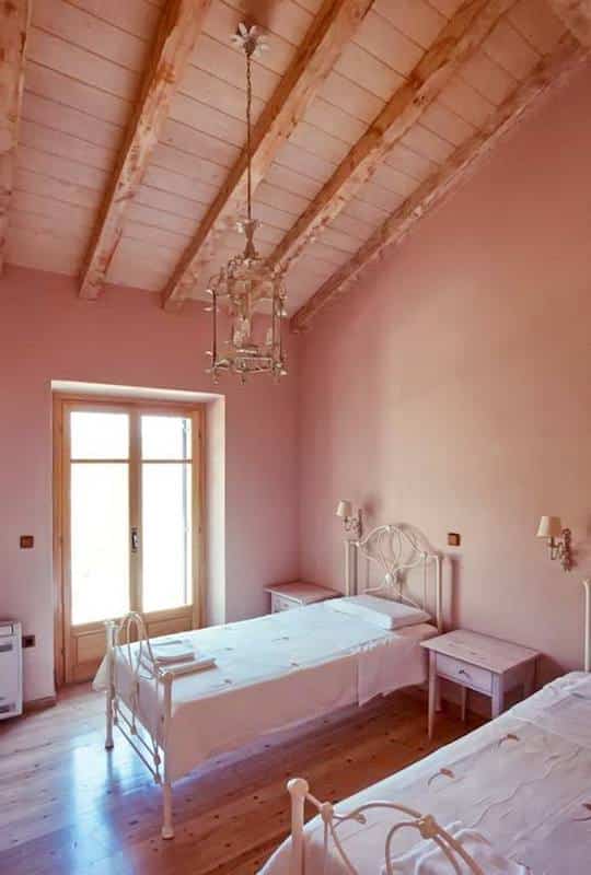 The stone-built holiday complex features romantic, country-style interiors with distressed wood furnishings, organic materials and hand-painted details. Each unit consists of 2 bedrooms, a living room and a fully equipped kitchen.
