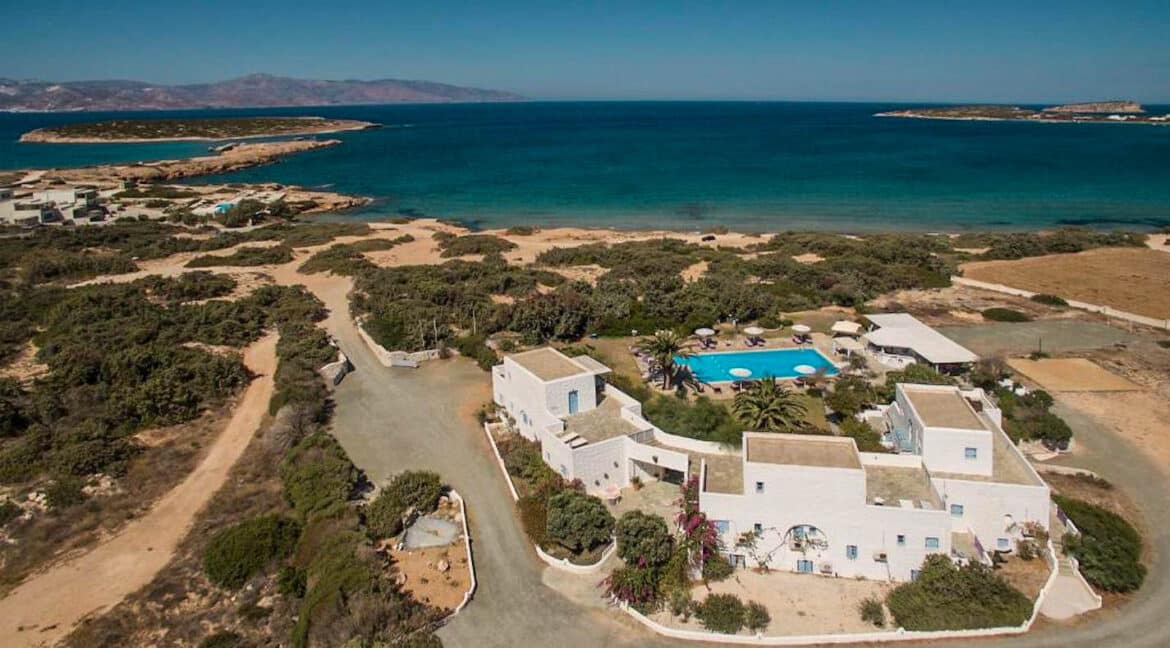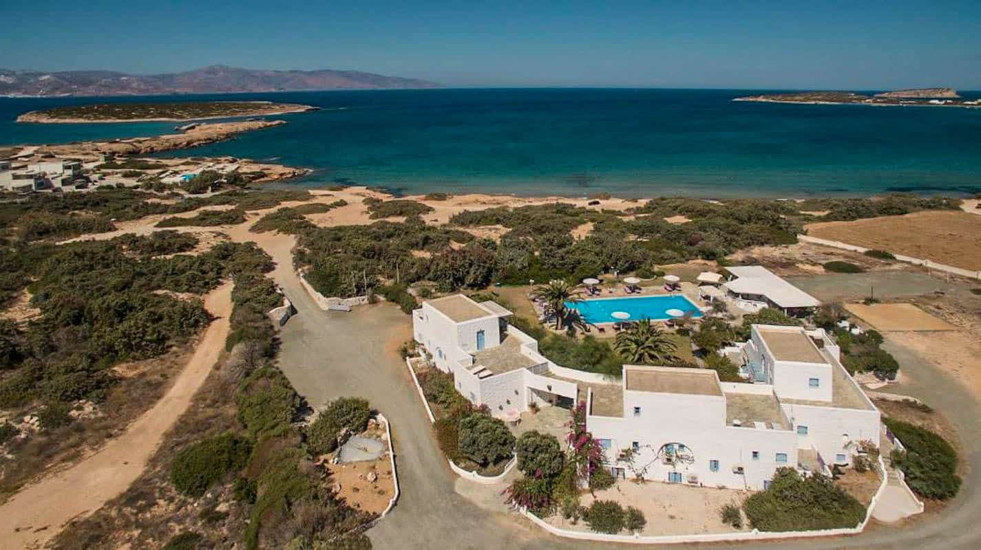The hotel sits on a big land plot lot (The land of the property is 8542 m2) , full of cedar trees and sand dunes and built-in austere Cycladic architectural style. The area is well known for its unique beauty and positive energy.
